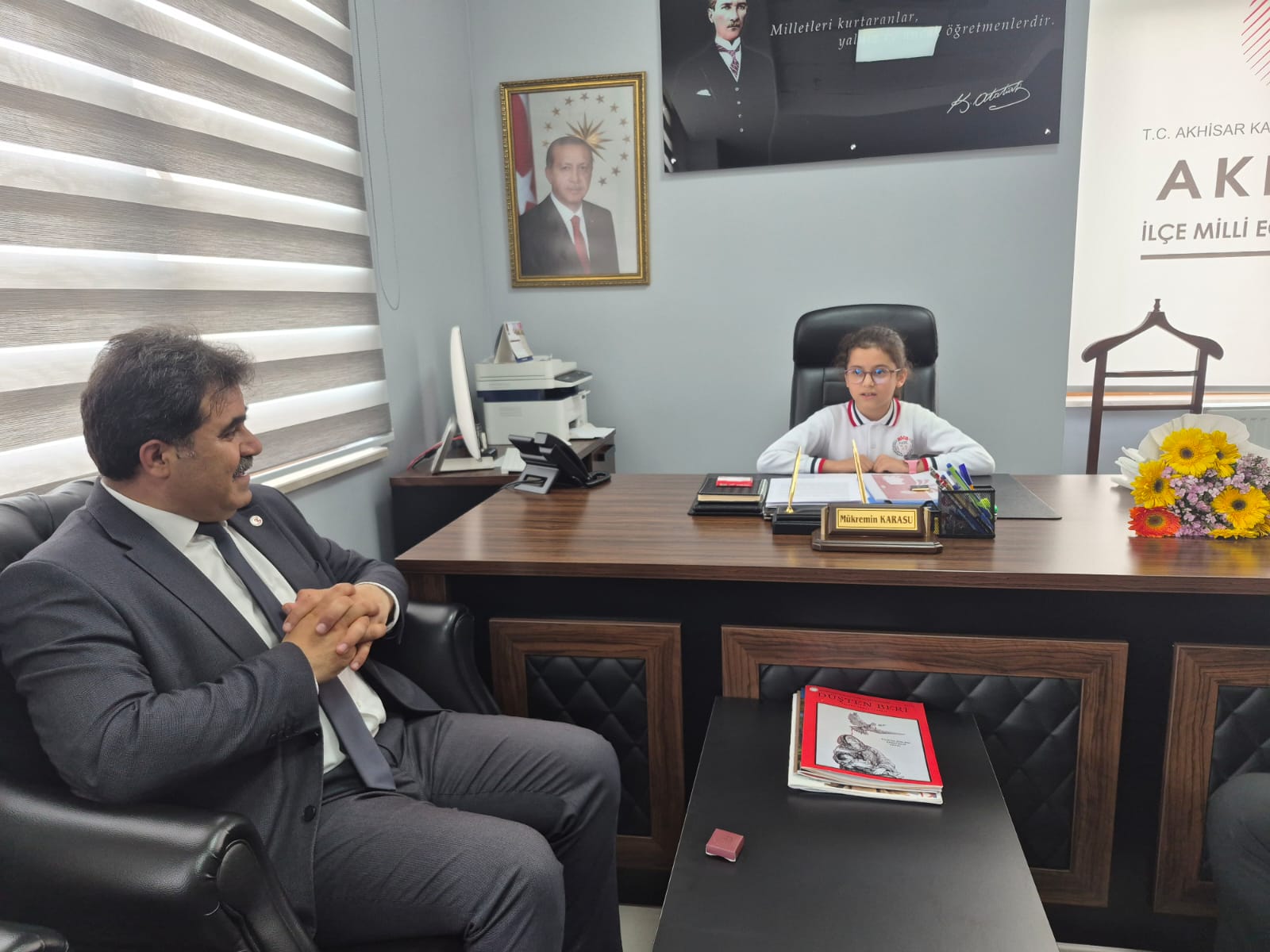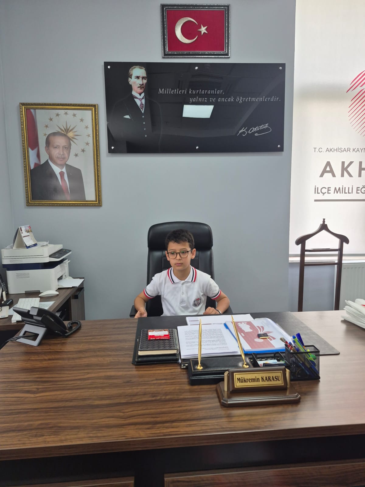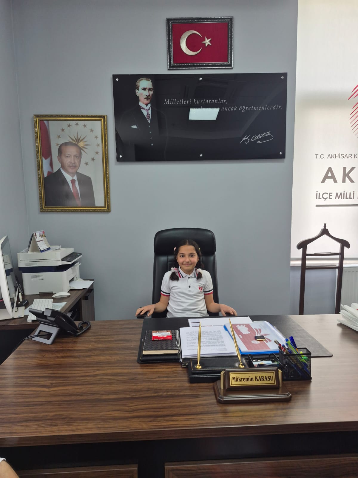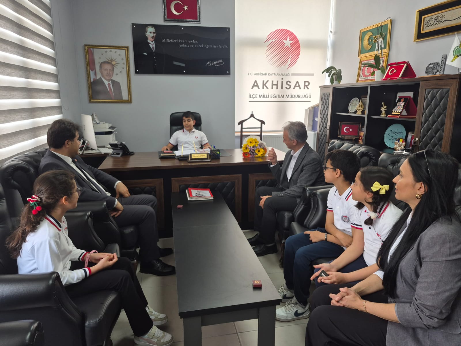 23 Nisan Ulusal Egemenlik ve Çocuk Bayramı öncesi Akhisar Kaymakamı sayın Mustafa CAN'ın koltuğuna Zübeyde Hanım İlkokulu öğrencisi otururken, İlçe Milli Eğitim Müdürü Mükremin KARASU'nun koltuğuna ise Namık Oğul İlkokulu öğrencileri oturdu. Temsili olarak makamların devredildiği ziyaretlerde öğrencilerle yakından ilgilenen Akhisar Kaymakamı sayın Mustafa CAN ve Müdür Mükremin KARASU, tüm çocukların 23 Nisan Ulusal Egemenlik ve Çocuk Bayramlarını kutladı.