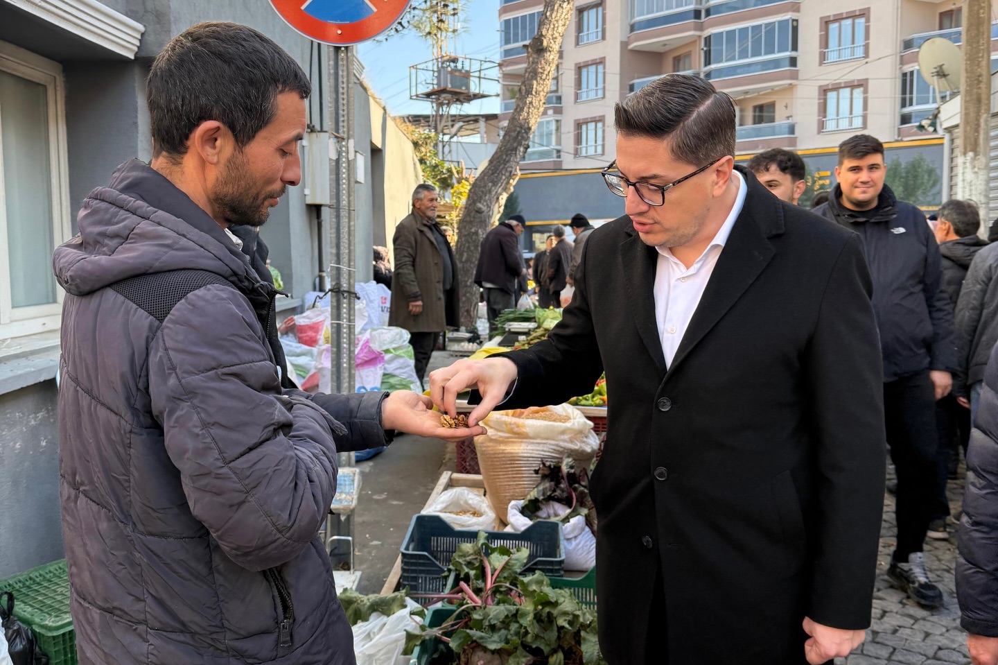 Program kapsamında AK Parti İlçe Teşkilatı daha sonra köylü pazarını ziyaret etti. Burada vatandaşlarla buluşan İlçe Başkanı Sözcüer ve beraberindeki heyet, pazarcı üreticiler ve emekçilerle sohbet ederek taleplerini dinledi.
