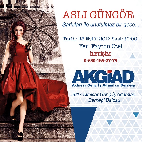 Akhisar Genç İş Adamlarının her yıl geleneksel olarak düzenlediği Balosu 23 Eylül Cumartesi gecesi Fayton Otelde gerçekleşecek.Her yıl Baloyu bir sanatçı ile renklendiren AKGİAD yönetimi bu yıl Aslı Güngörü konuk ediyor.Muhteşem bir müzik ziyafeti için sizleri de bu geceye davet ediyorlar.