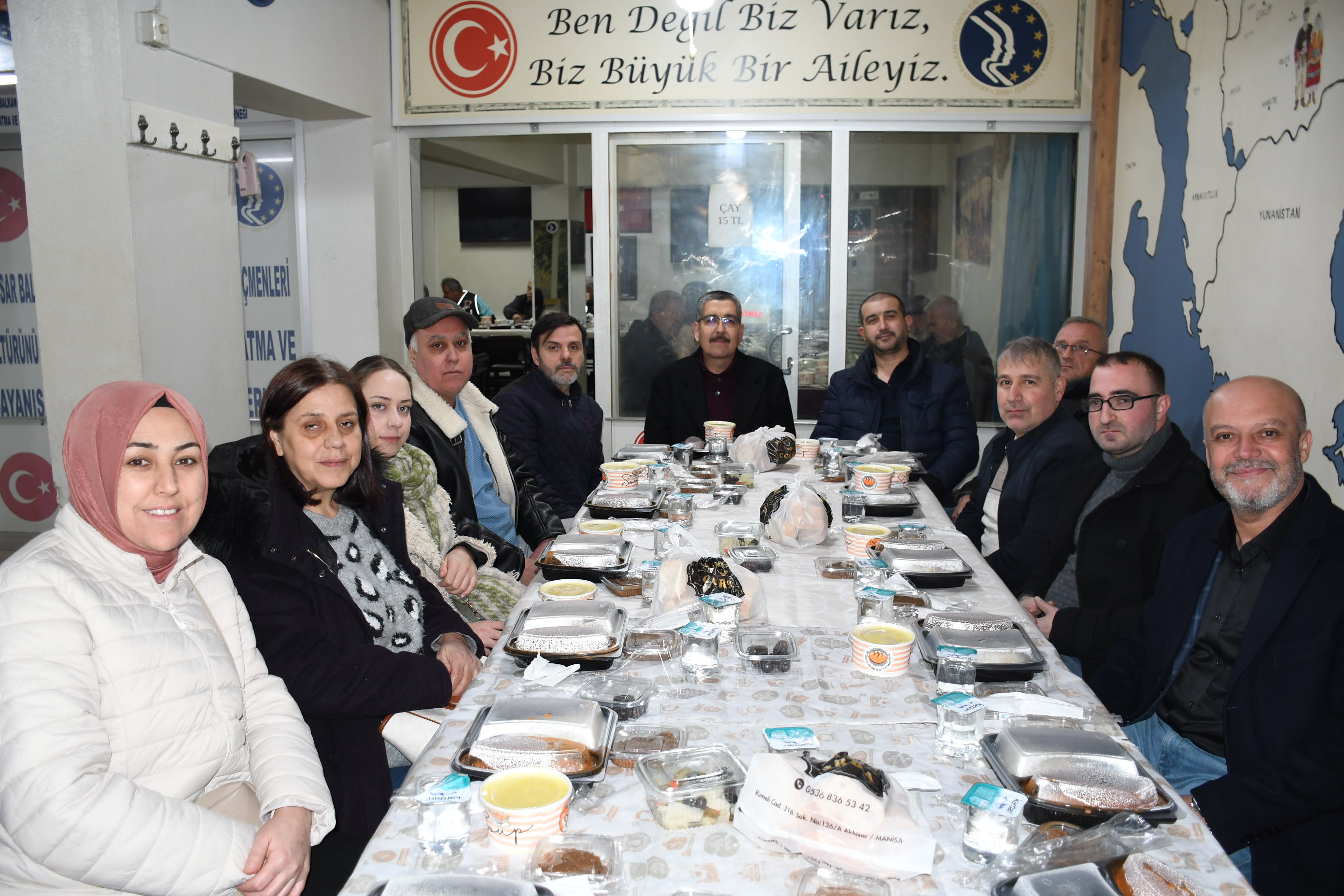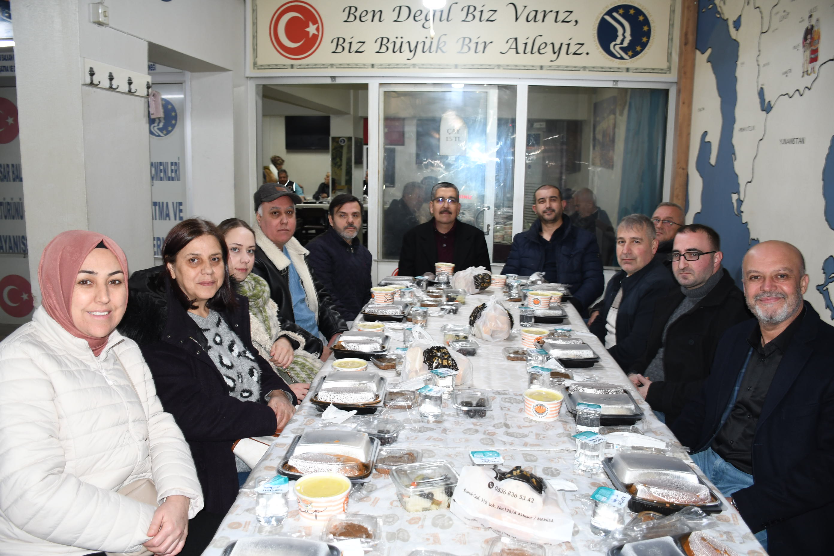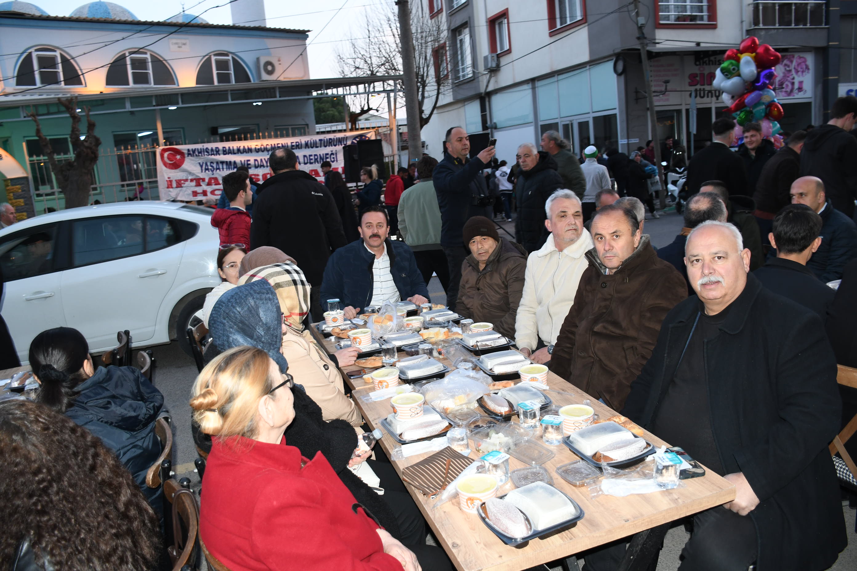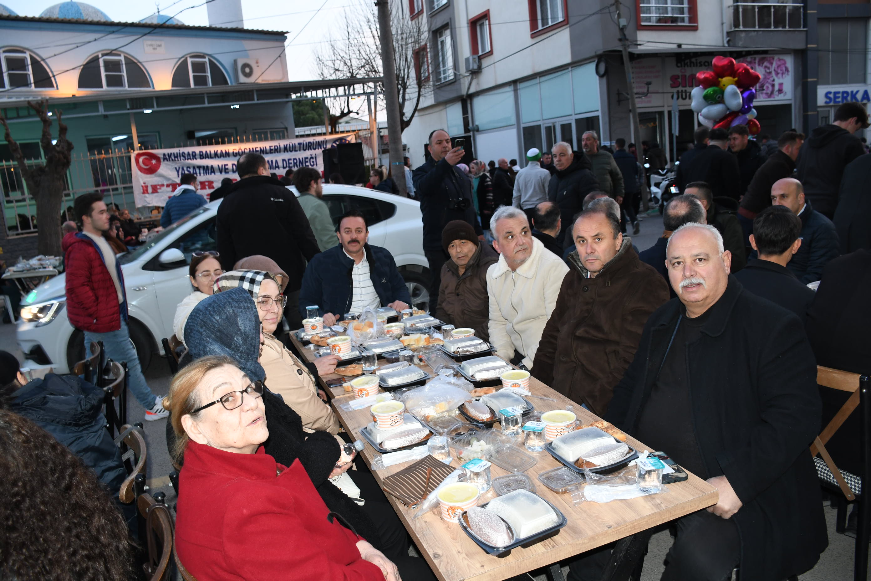Bu manevi gecede bizi yalnız bırakmayan; ilçemizin çok değerli protokol üyelerine oda başkanları, dernek başkanları ve yöneticileri, muhtarlarımız ve çok değerli Akhisar Balkan Göçmenleri Derneğine gönül veren siz Akhisarlılar bizi onurlandırdığınız için teşekkür ederiz. Akhisar Balkan Göçmenleri Derneğinin Dernek Binası önünde düzenlenen İftar yemeğine Cumhuriyet Halk Partisi Manisa Milletvekili Ahmet Vehbi Bakırlıoğlu, Akhisar Belediye Başkanı Ekrem Kayserili ,İlçe Kaymakamı Mustafa Can, Siyasi Parti İlçe başkanları ve yönetim kurulu üyeleri, Dernek Başkanları, Esnaf Oda başkanları Muhtarlar ve çok sayıda vatandaşlar katıldı.