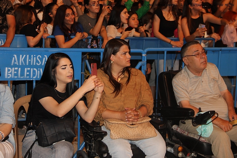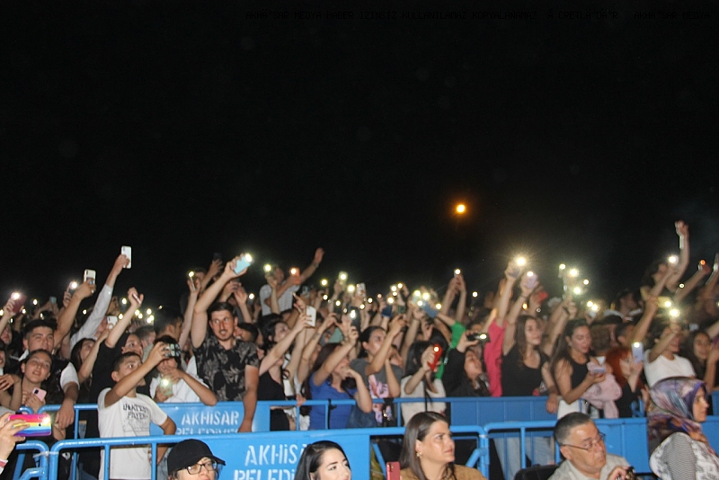 Akhisar Belediyesi Hüsnü Kahraman Kültür Parkı Gölet konser Alanı’nda sevenleriyle buluşan ünlü şarkıcı, sevilen şarkılarını Akhisarlılar için seslendirdi. Başarılı sanatçının şarkılarına eşlik eden hayranları, festivalin coşkusunu doyasıya yaşadı. Kendisini sevenleriyle buluşturan akhisar Belediye Başkanı Besim Dutlulu sahneye çıkarak ünlü sanatçıya günün anısına çiçek takdim ederken Akhisar gençlerinin konserden büyük keyif aldığını ifade etti.