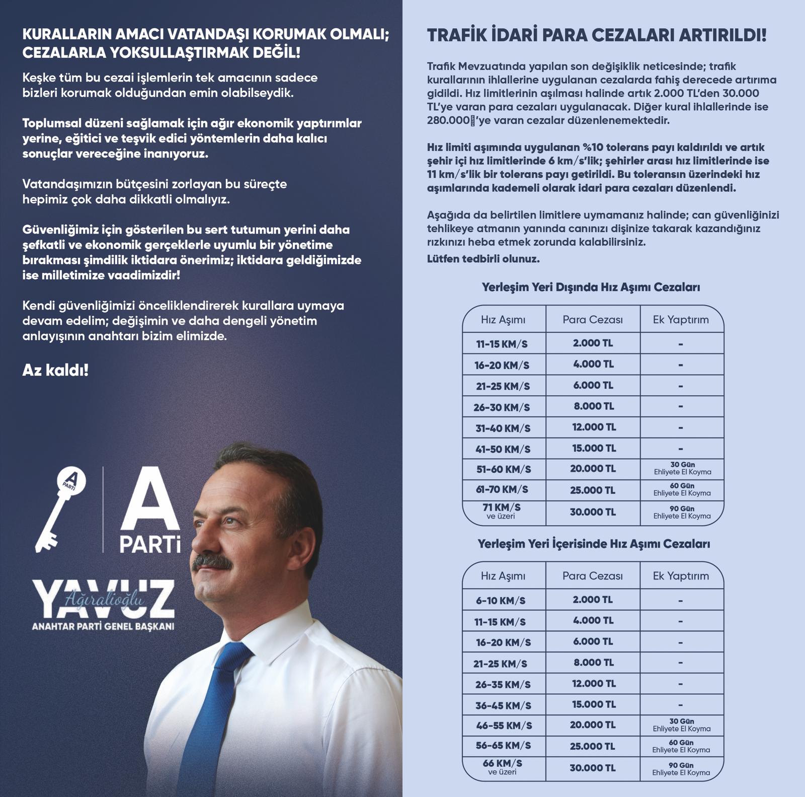 Anahtar Parti temsilcileri, yeni düzenlemelerle ilgili vatandaşlara bilgi vererek trafik kurallarına uyumun önemine dikkat çekti. Yapılan açıklamalarda, can ve mal güvenliğinin korunması için hız limitlerine riayet edilmesi gerektiği vurgulandı.