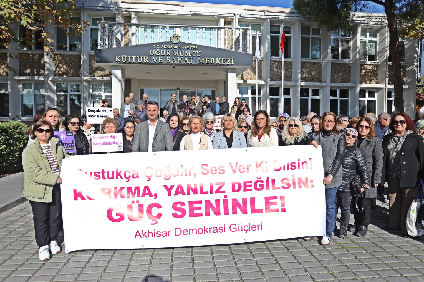 Bugün, 25 Kasım Kadına Yönelik Şiddete Karşı Uluslararası Mücadele Günü’nde, Akhisar’dan yükselen ortak bir sesle buradayız.
