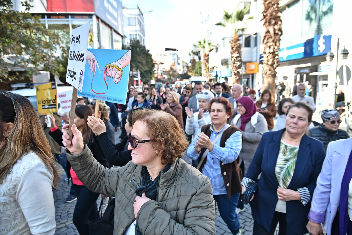 Yürüyüşe Belediye Başkanı Ekrem Kayserili Başkan yardımcıları Emre Okkalı Hasan Umutlu.Stk Başkan ve yöneticileri katılarak destek verdi.