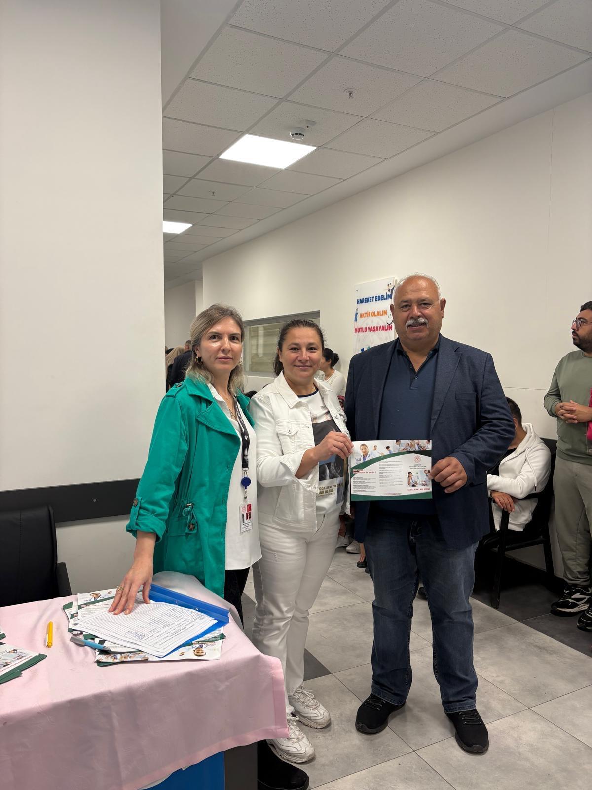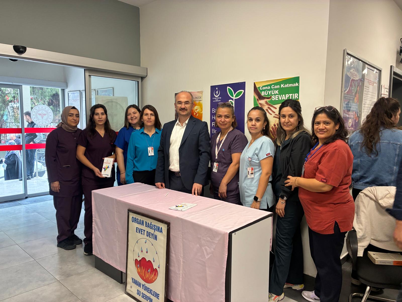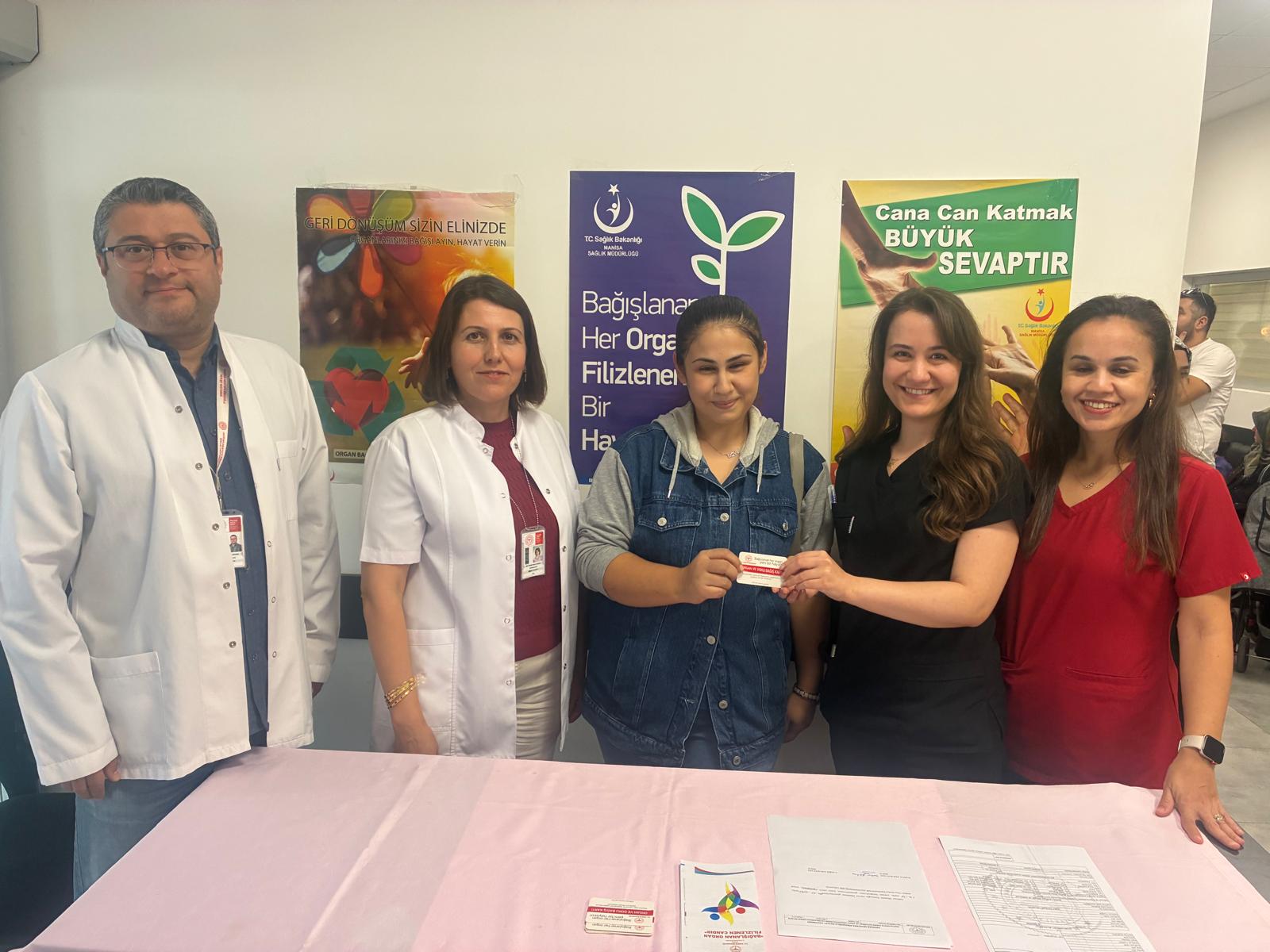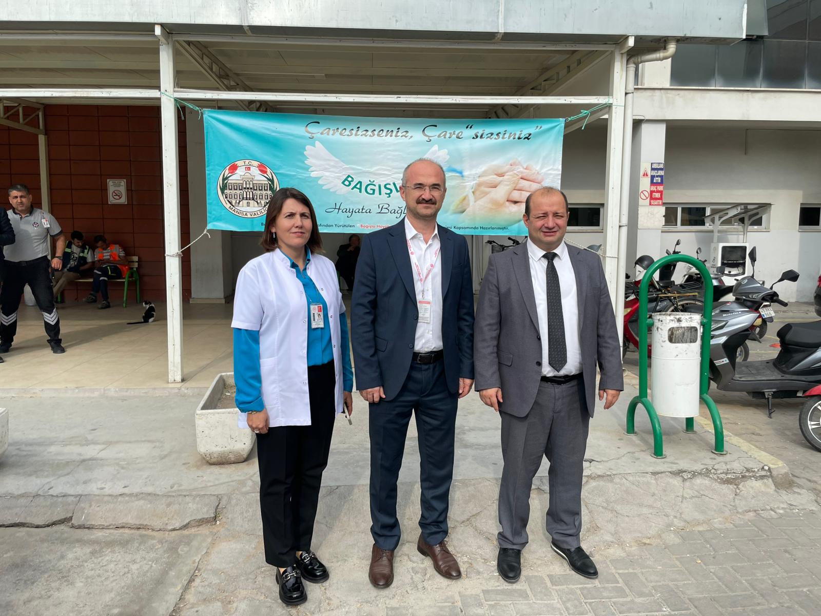 Organ Bağışı Haftası kapsamında Akhisar Mustafa Kirazoğlu Devlet Hastanesi tarafından vatandaşları bilgilendirmek ve farkındalık oluşturmak amacıyla bilgilendirme standı kuruldu.Hastane personeli tarafından yürütülen etkinlikte, vatandaşlara organ bağışının önemi, bağış süreci ve toplumsal etkileri hakkında detaylı bilgi verilerek, dileyen kişilerin organ bağışında bulunmalarına da yardımcı olundu.“Bağışlanan Her Organ, Filizlenen Bir Hayattır” sloganıyla gerçekleştirilen farkındalık çalışmaları kapsamında hastanenin farklı alanlarına afişler asılarak organ bağışının önemi vurgulandı.Etkinlik kapsamında İl Sağlık Müdürü Uzm. Dr. Mehmet Fatih Zeren, Hastane Başhekimi Uzm. Dr. Hamza Bambal ve hastane idari yönetimi de standı ziyaret ederek yürütülen çalışmalar hakkında bilgi aldı. Yetkililer, organ bağışının insan hayatı için taşıdığı büyük öneme değinerek farkındalık oluşturulmasının toplum sağlığı açısından son derece kıymetli olduğunu belirtti.Unutmayalım; bir bağış, birden fazla hayata can olabilir.