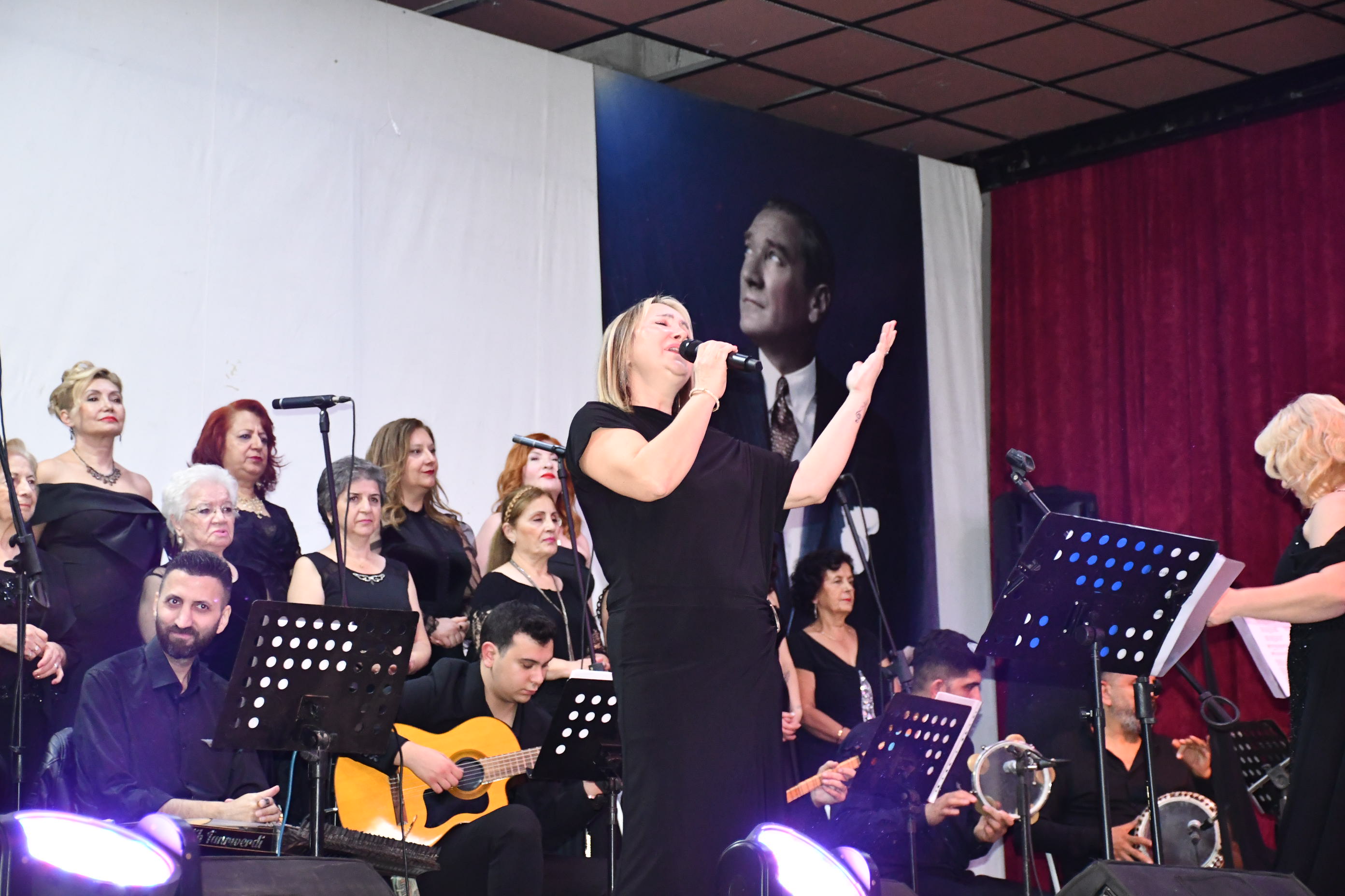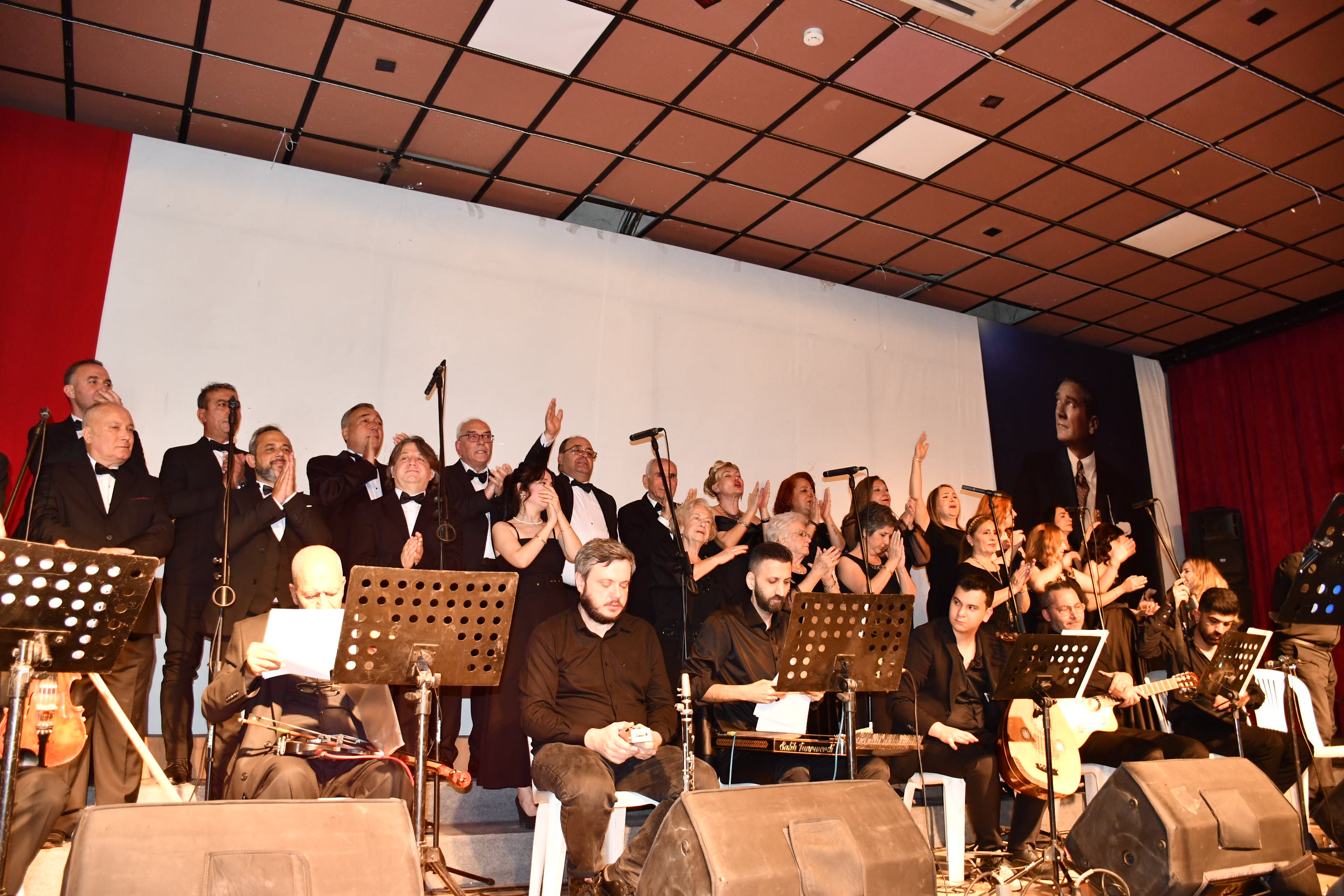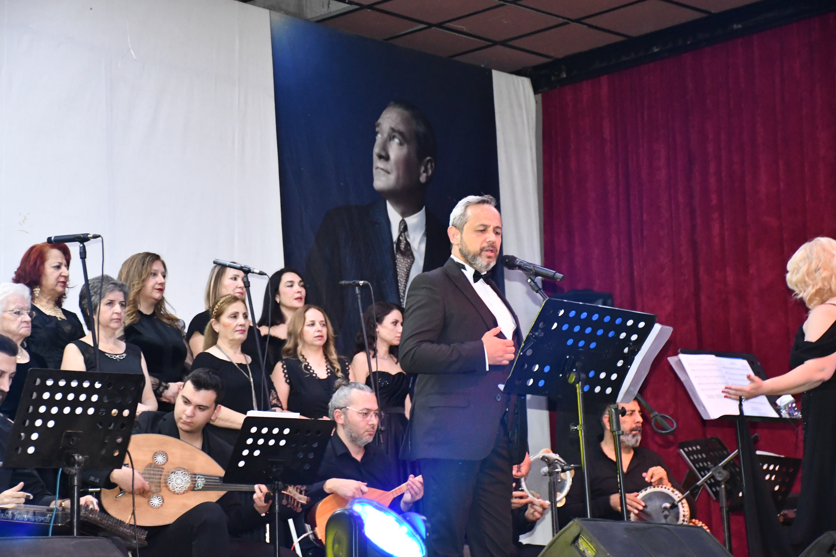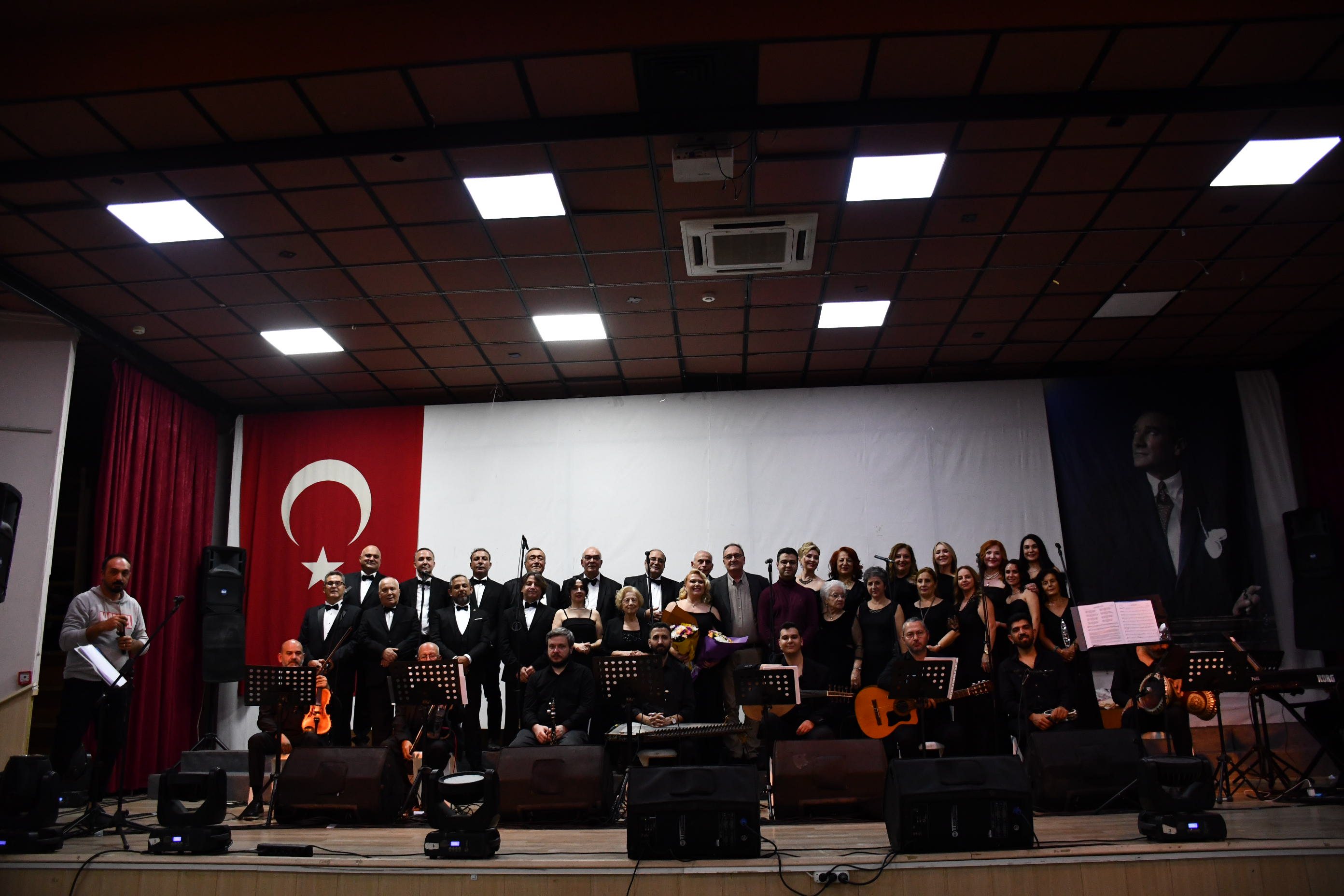 Program sonunda sahneye gelen sanatçılar, Atatürk’ün anısına tüm salonla birlikte “10. Yıl Marşı”nı seslendirerek geceyi coşku içinde noktaladı.