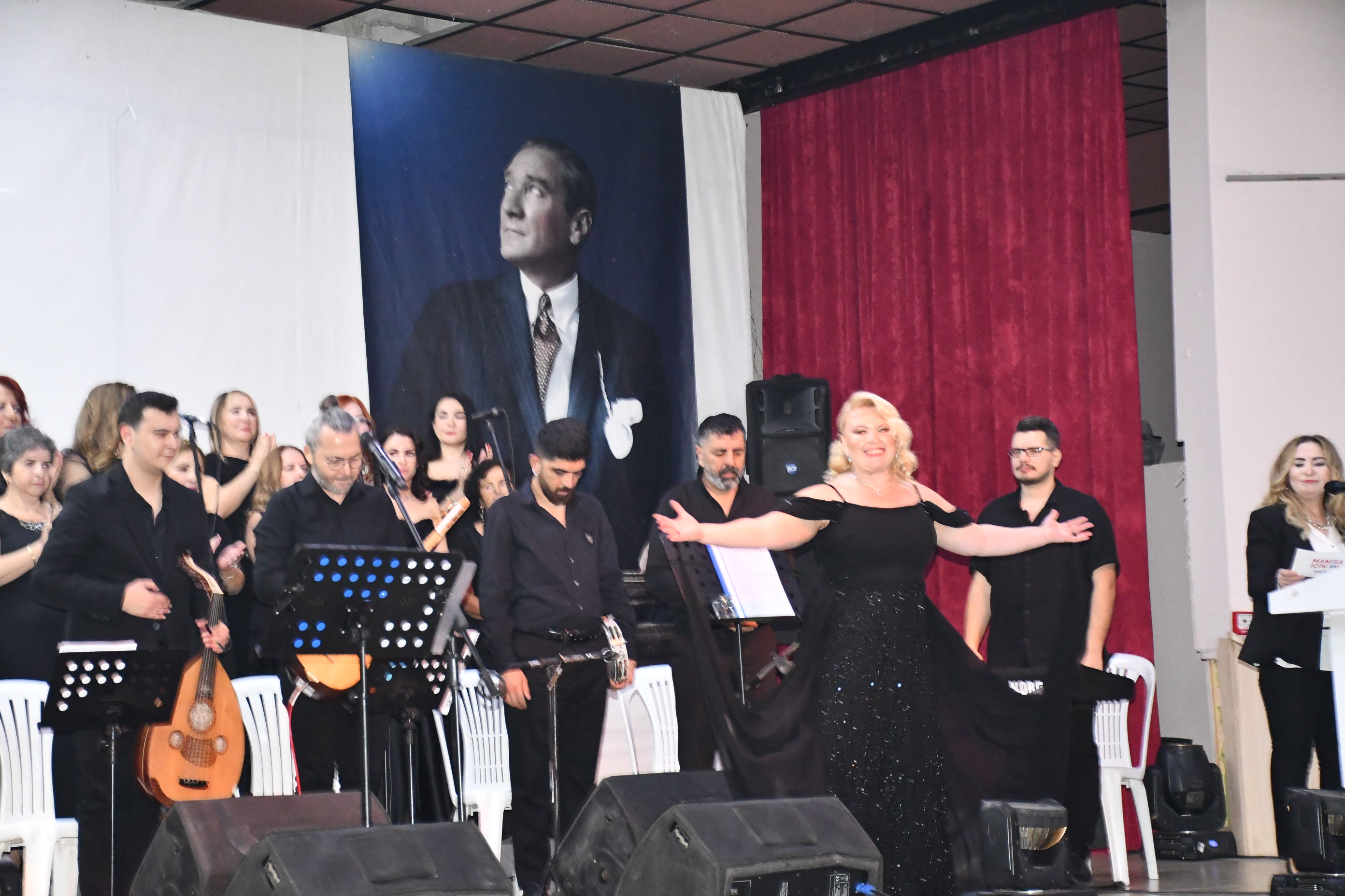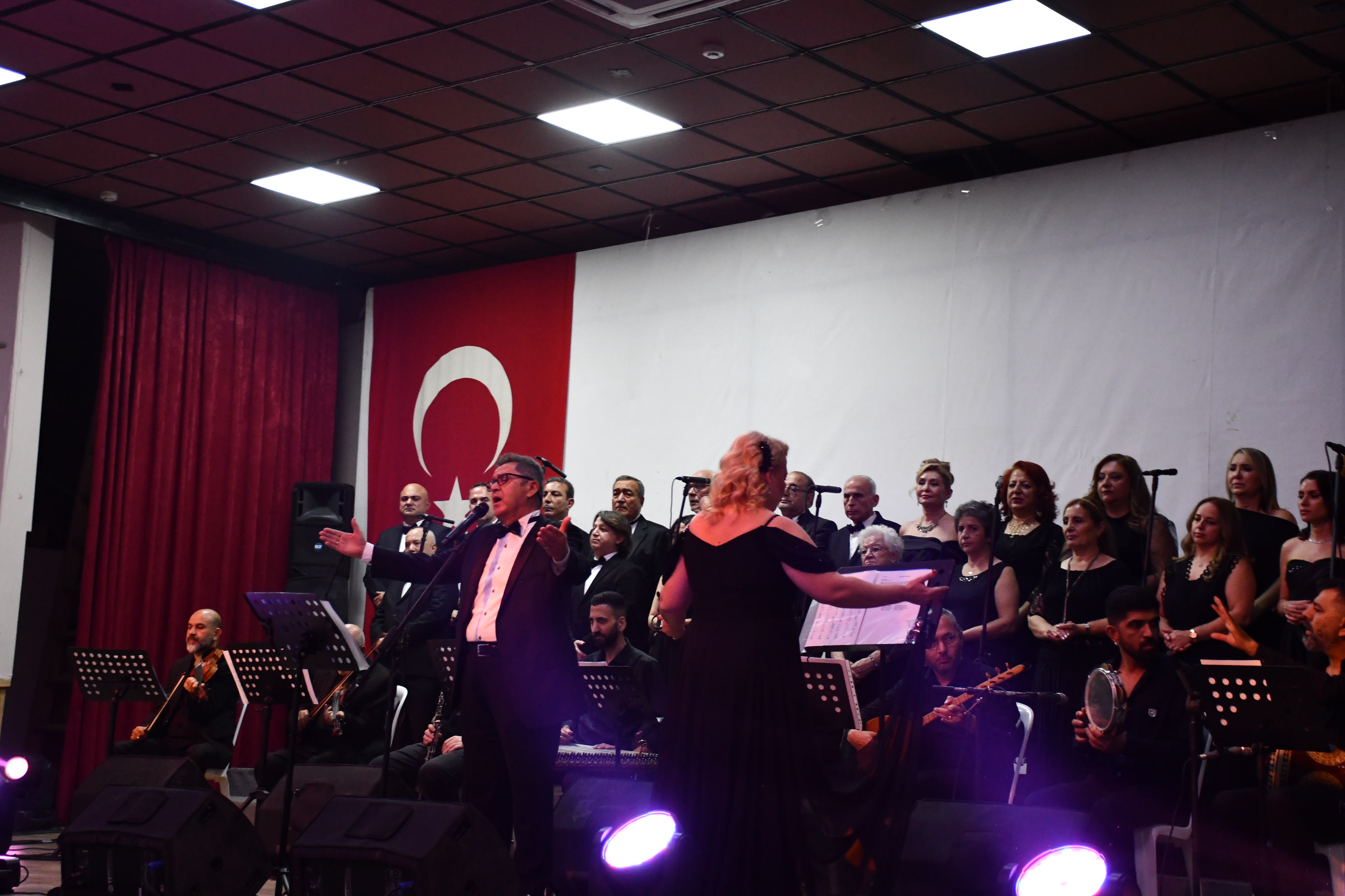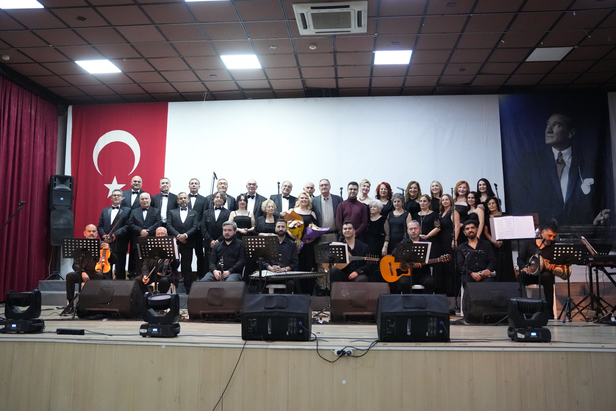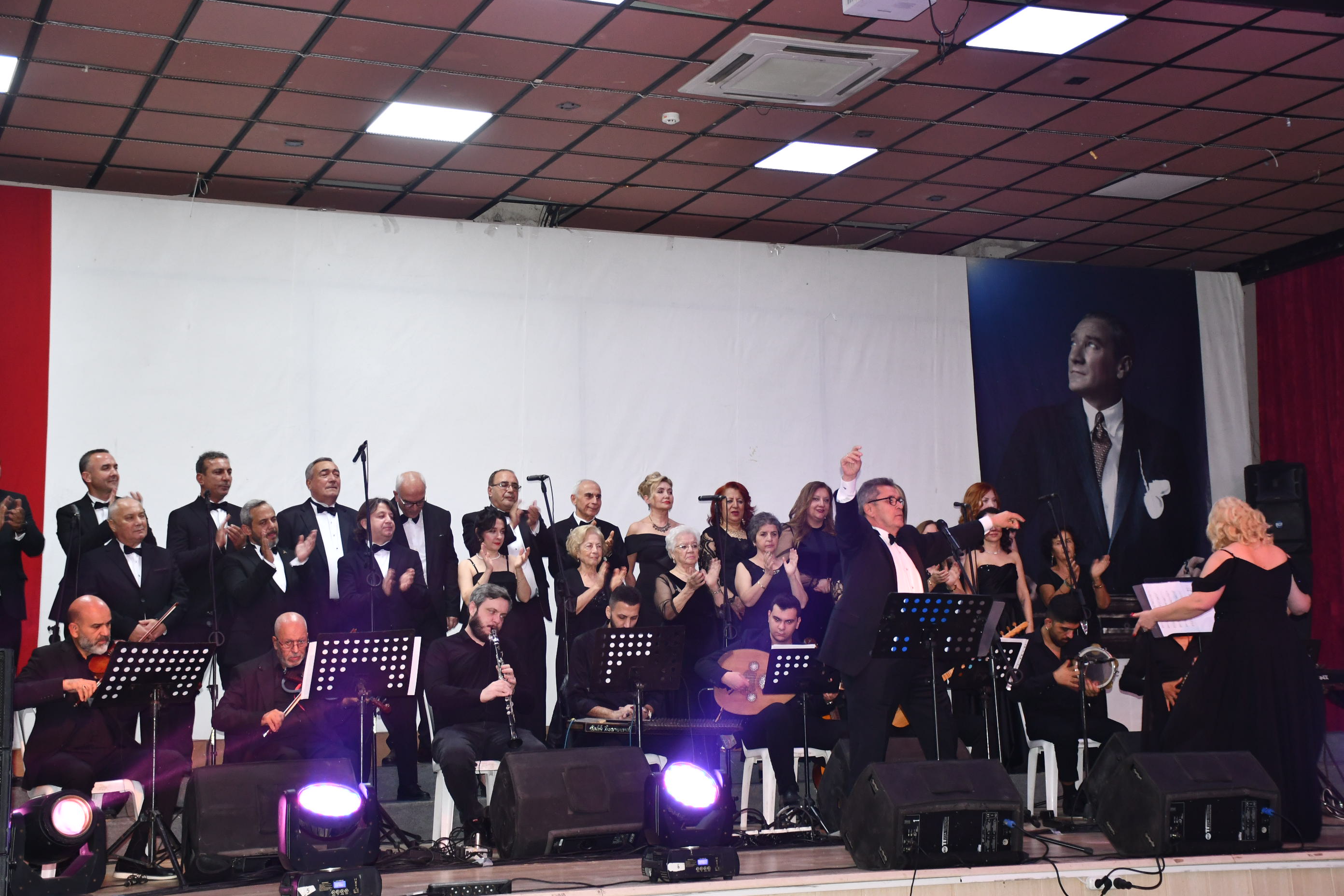 Program sonunda sahneye gelen sanatçılar, Atatürk’ün anısına tüm salonla birlikte “10. Yıl Marşı”nı seslendirerek geceyi coşku içinde noktaladı.