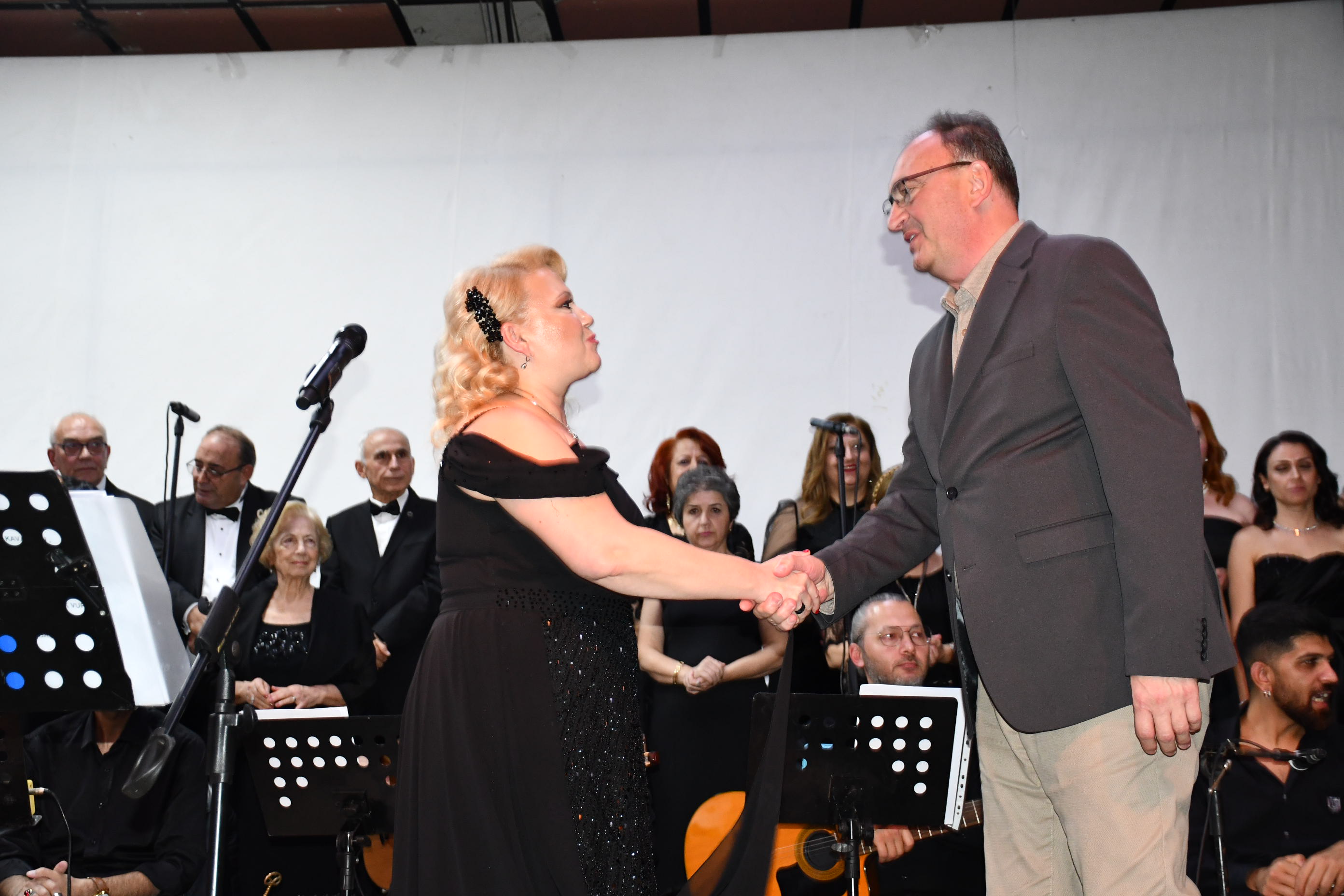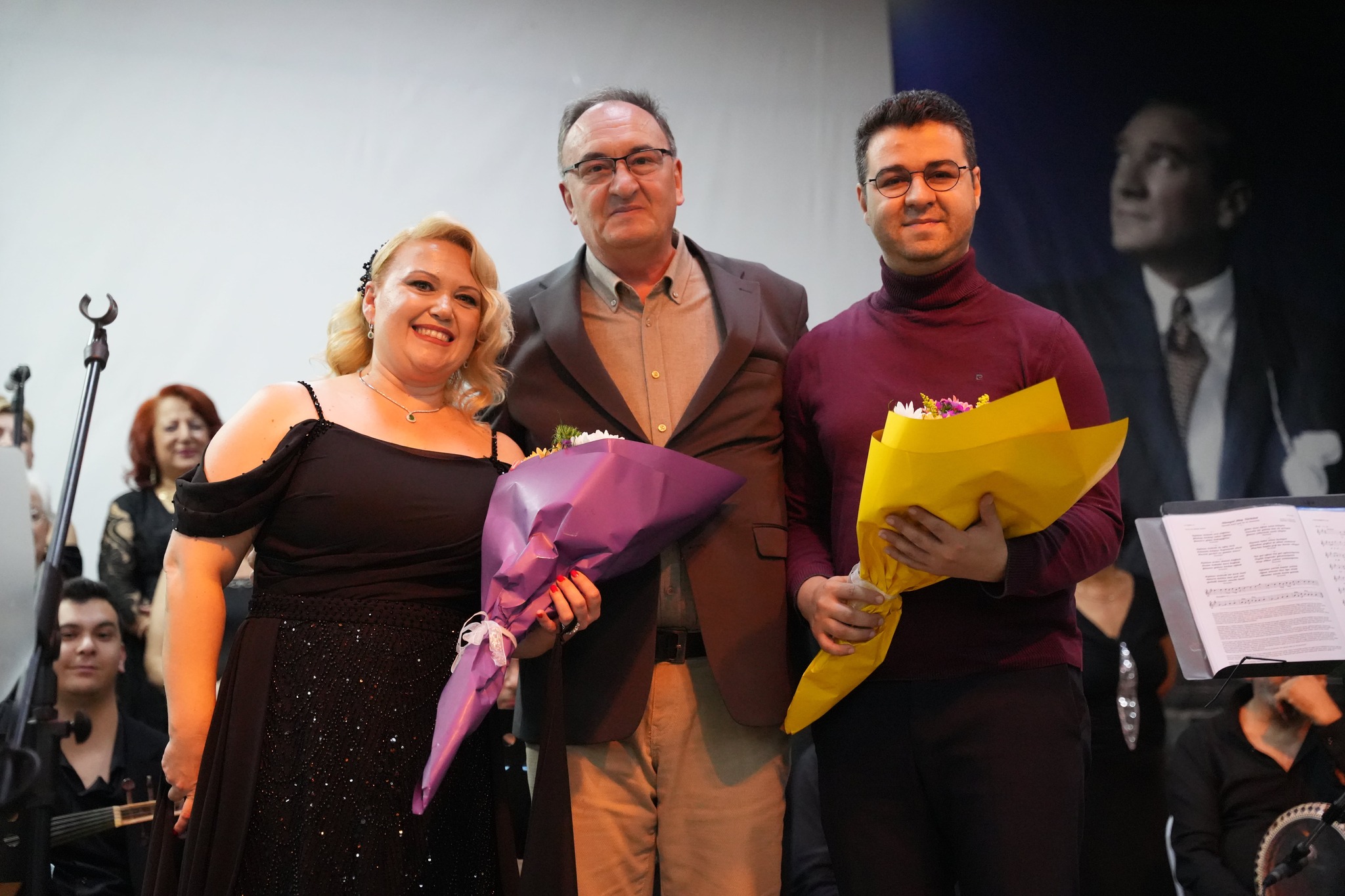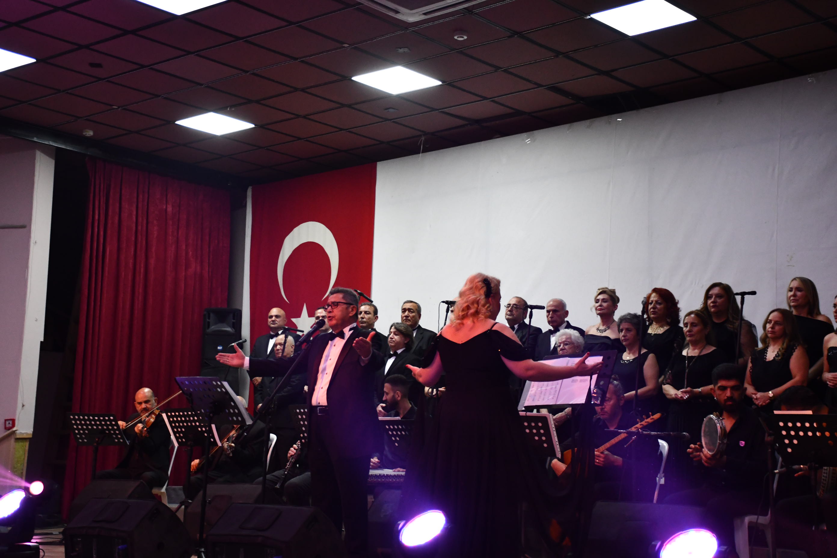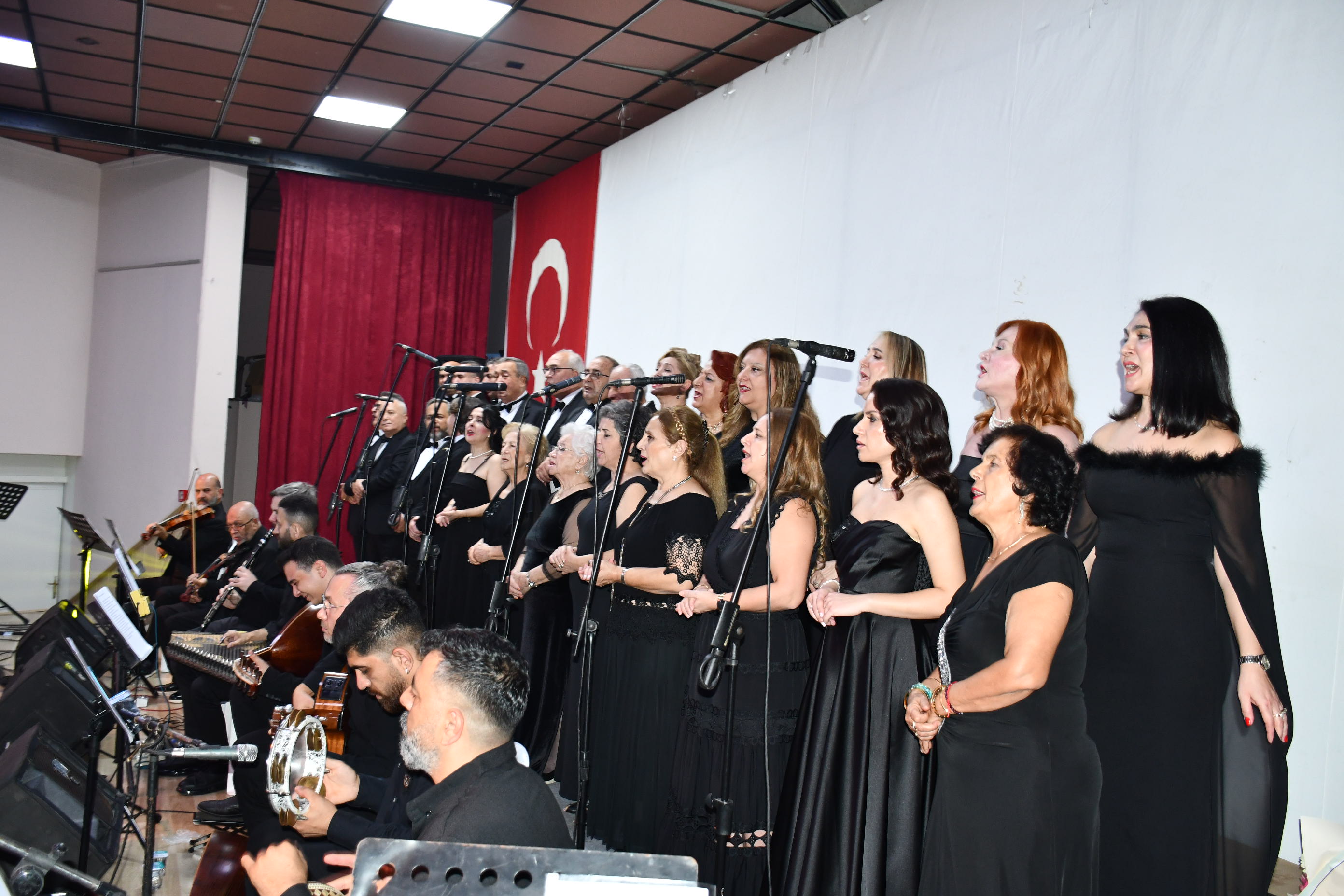 Program sonunda sahneye gelen sanatçılar, Atatürk’ün anısına tüm salonla birlikte “10. Yıl Marşı”nı seslendirerek geceyi coşku içinde noktaladı.