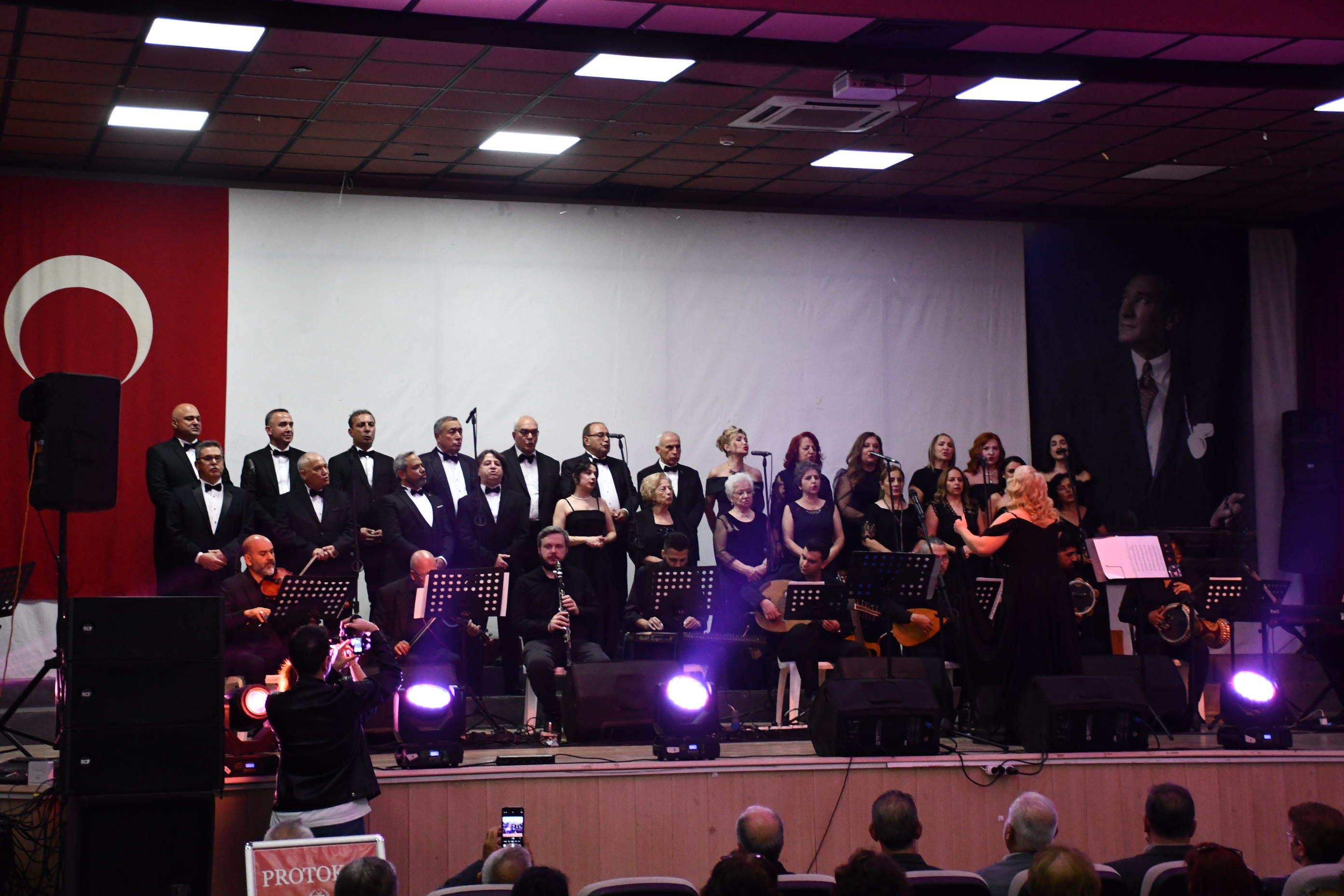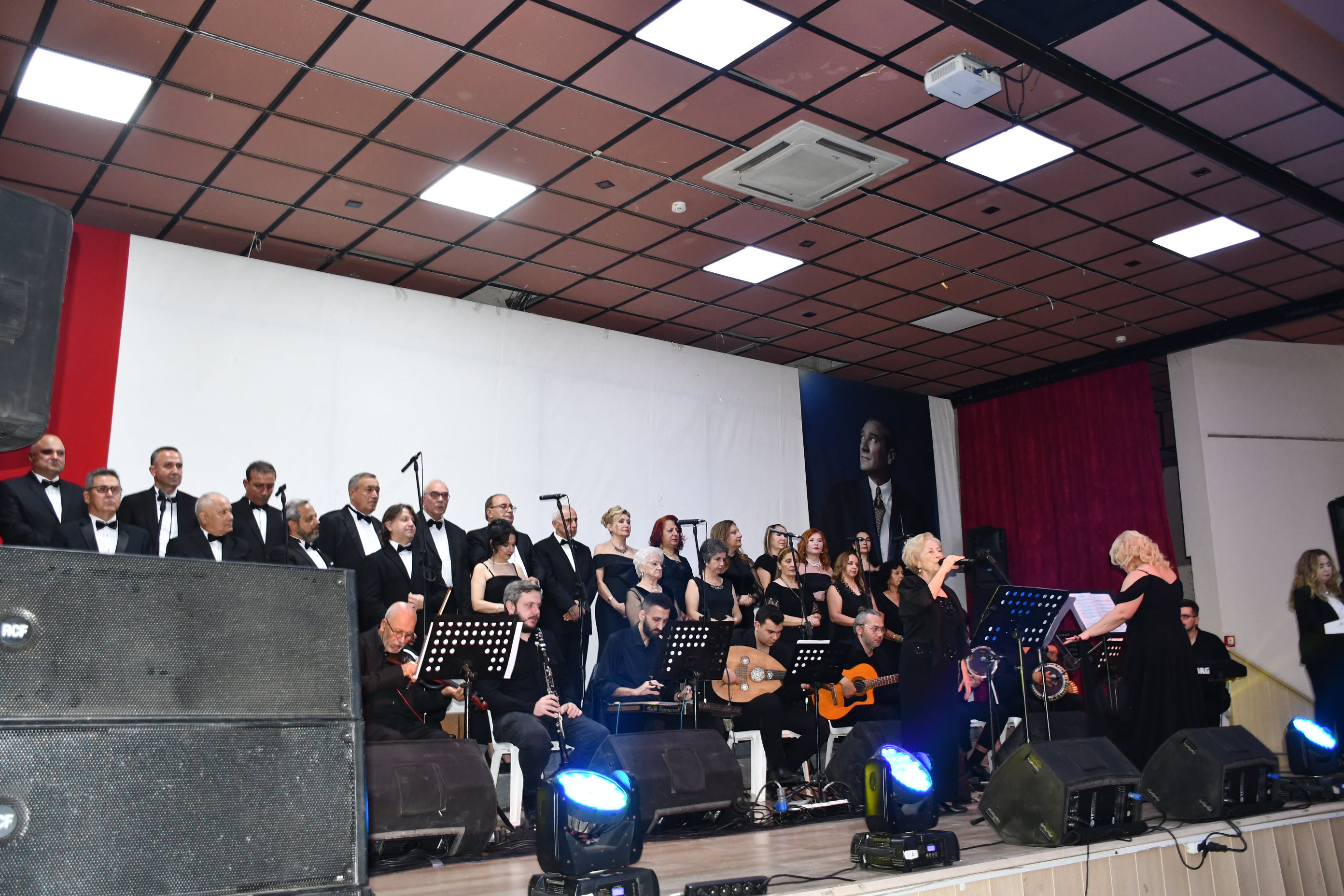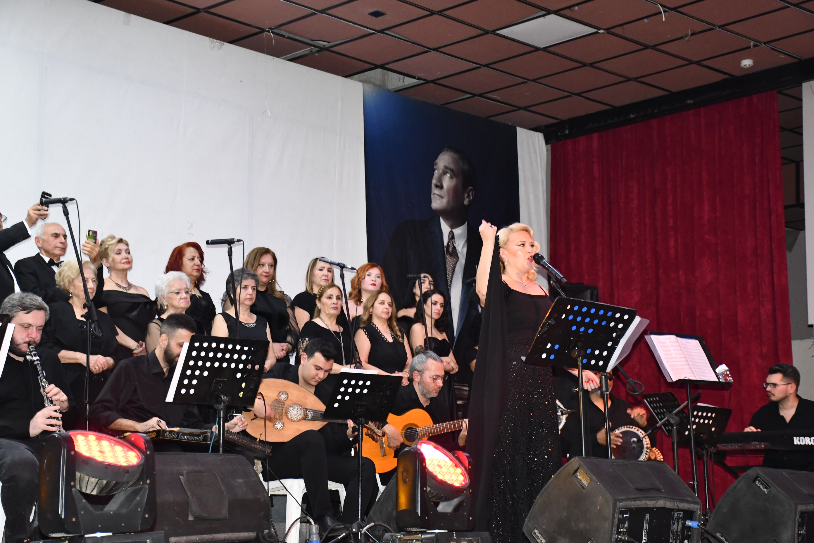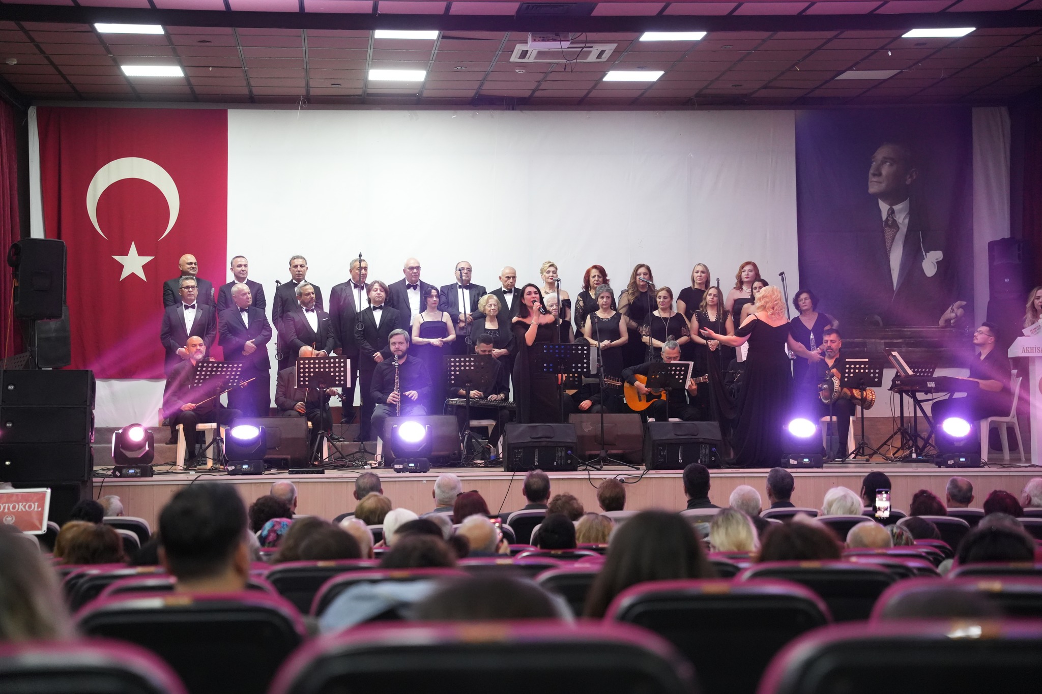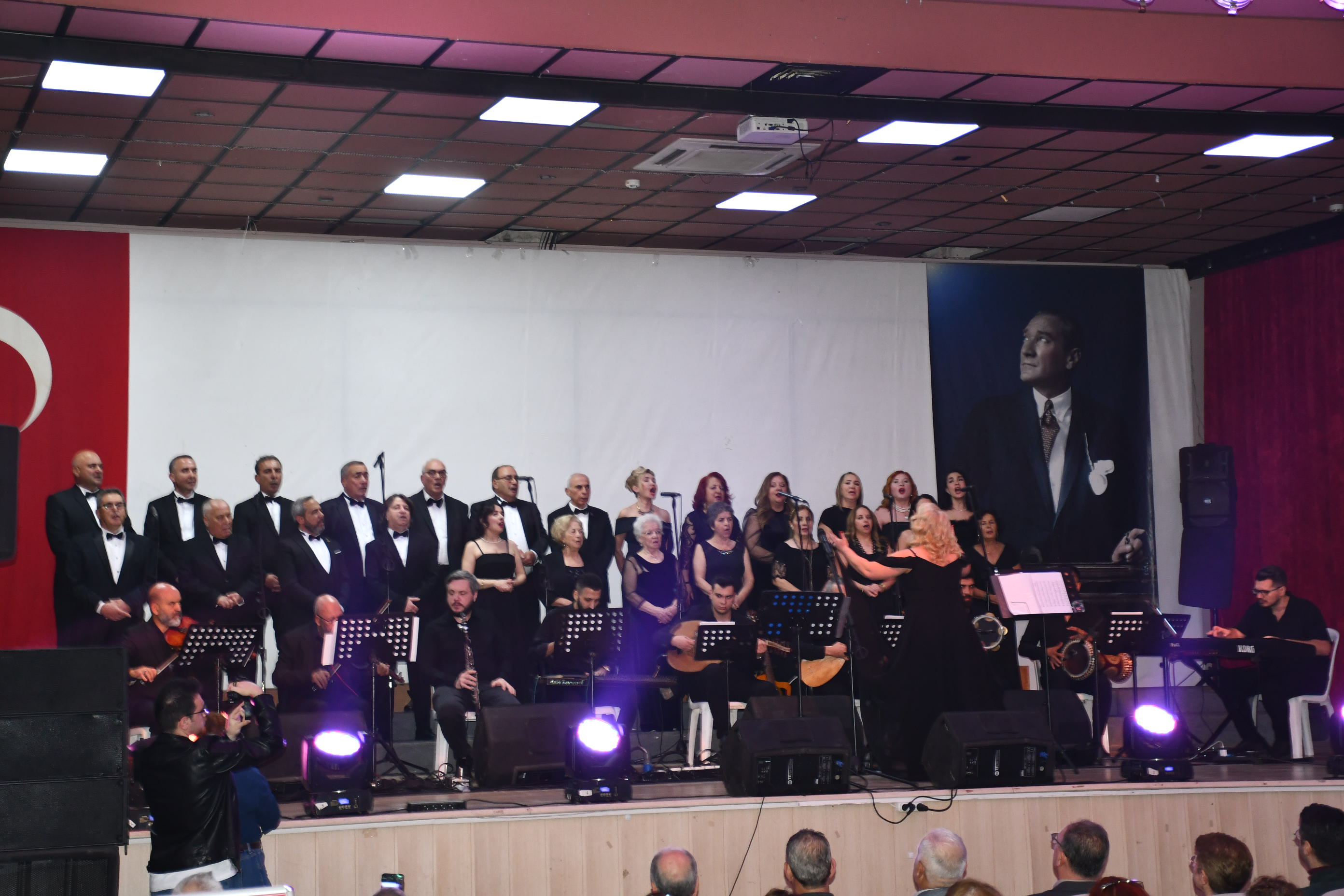 Koro, “Fikrimin İnce Gülü”, “İzmir Marşı”, “Çalın Davulları” gibi Atatürk’ün sevdiği unutulmaz eserleri seslendirirken, dinleyiciler de zaman zaman şarkılara hep bir ağızdan eşlik etti.