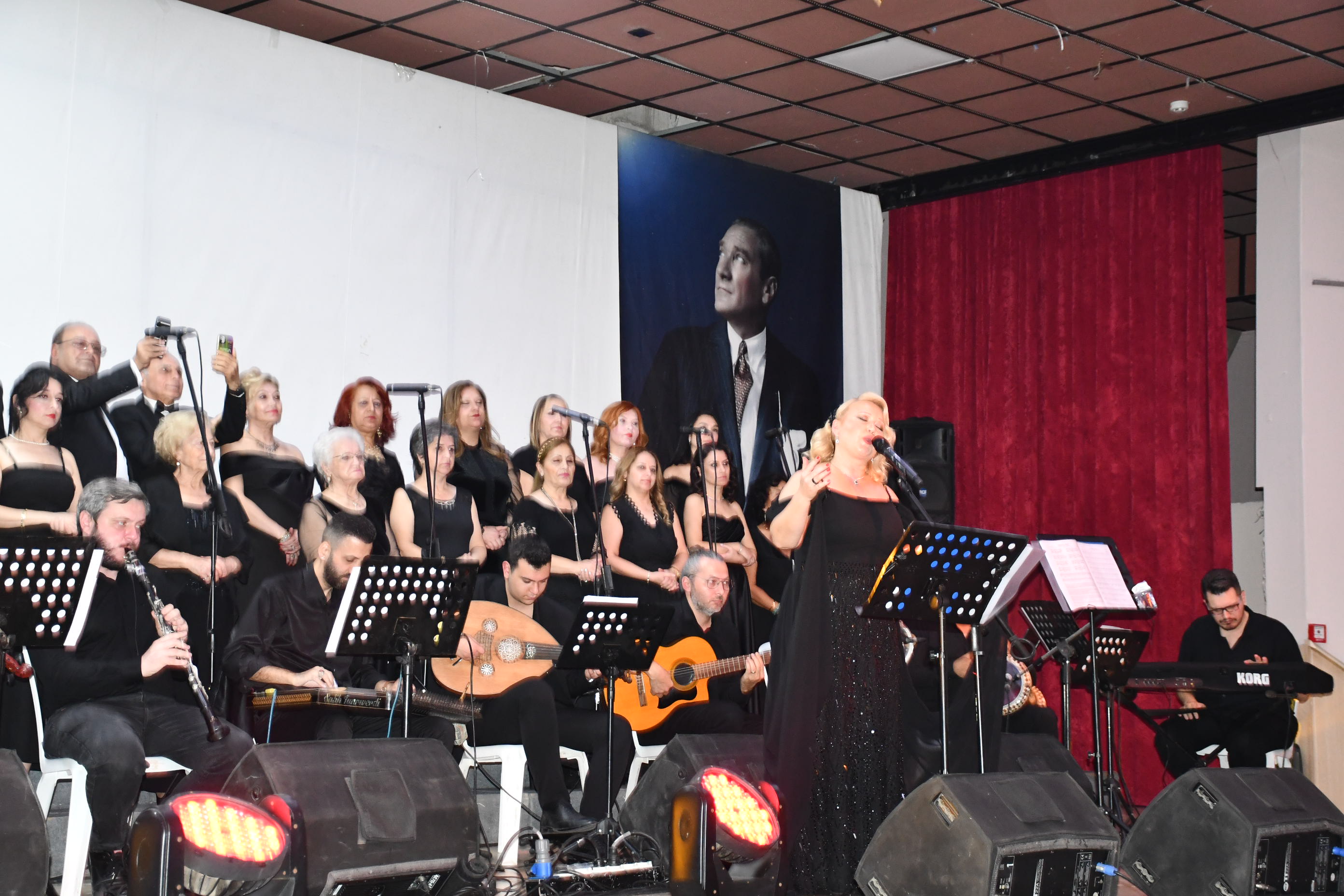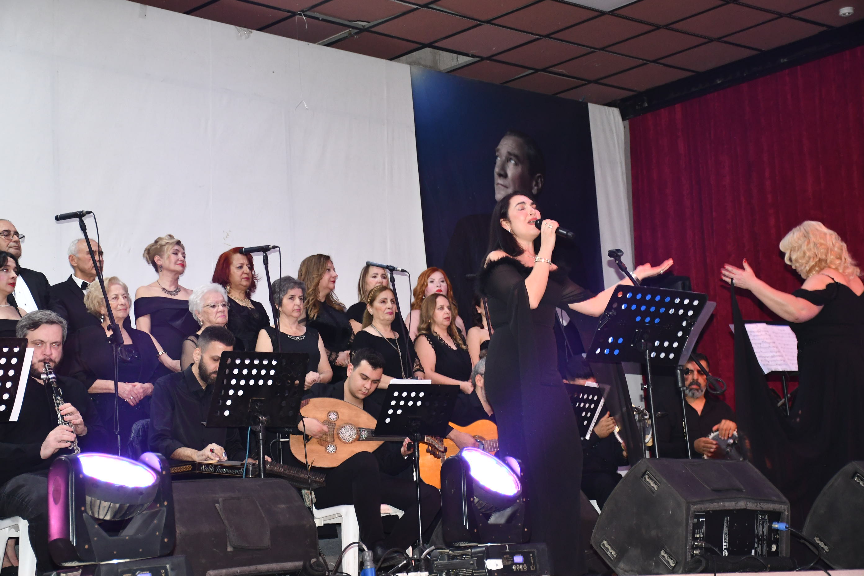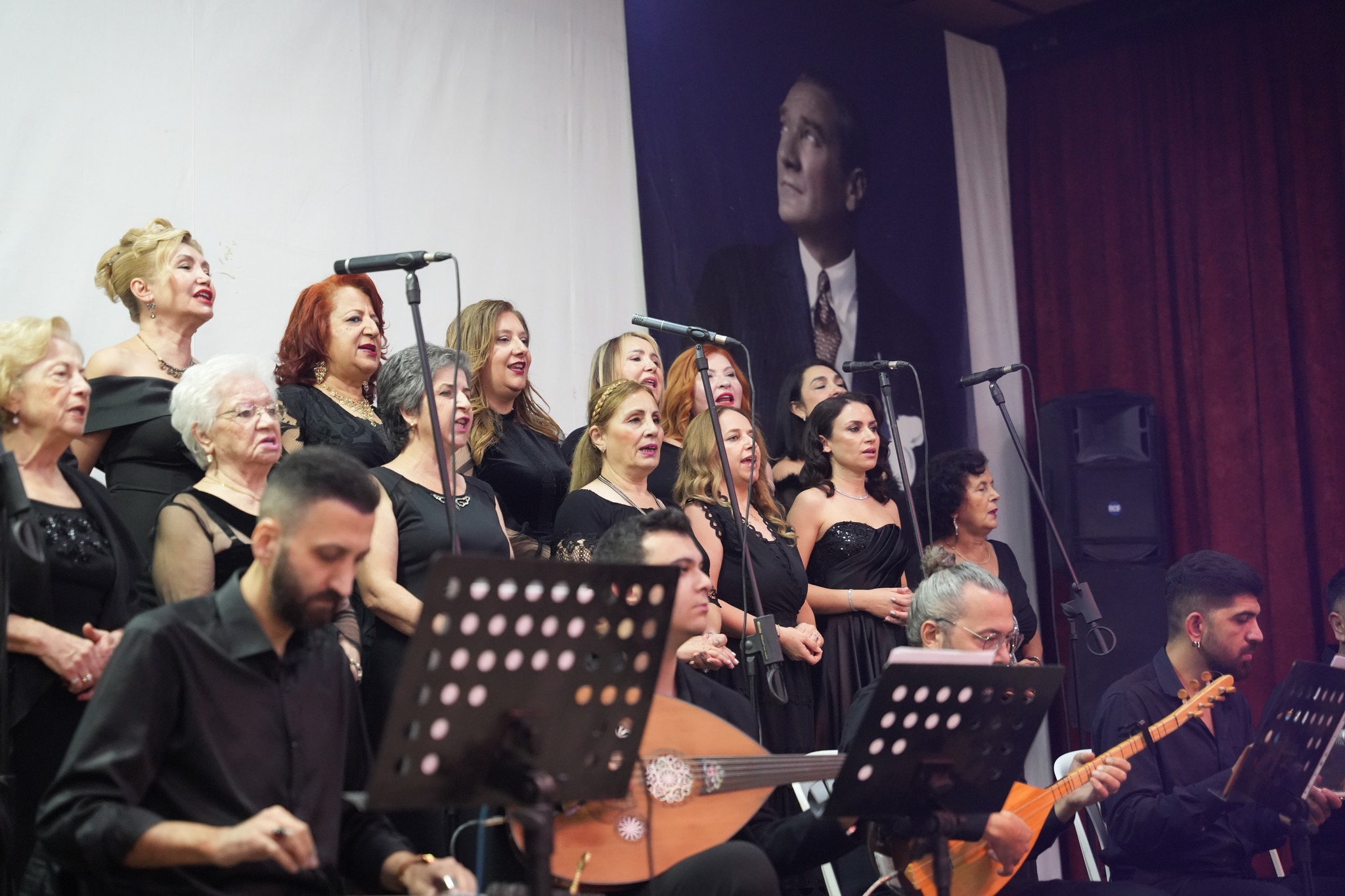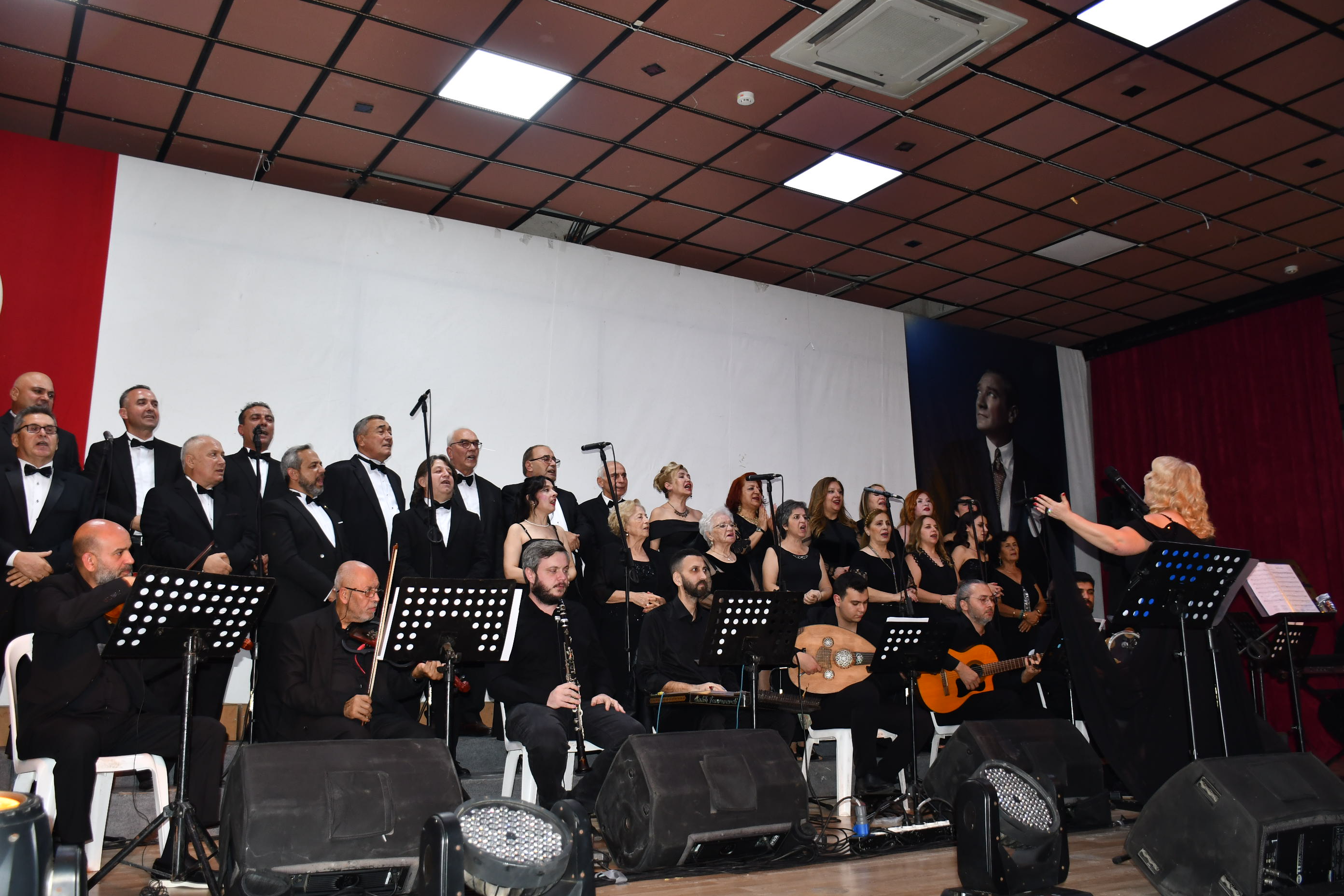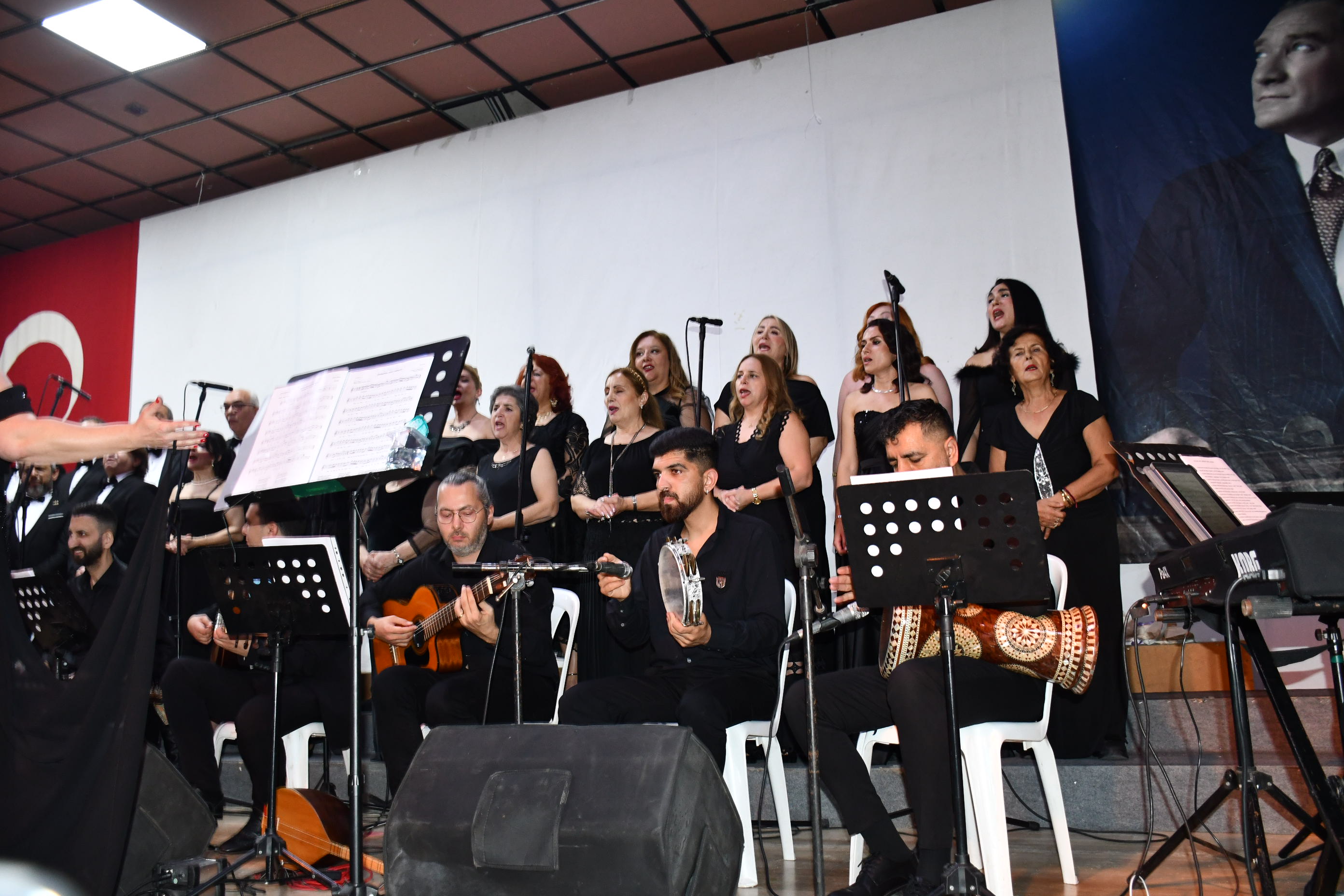 Koro, “Fikrimin İnce Gülü”, “İzmir Marşı”, “Çalın Davulları” gibi Atatürk’ün sevdiği unutulmaz eserleri seslendirirken, dinleyiciler de zaman zaman şarkılara hep bir ağızdan eşlik etti.