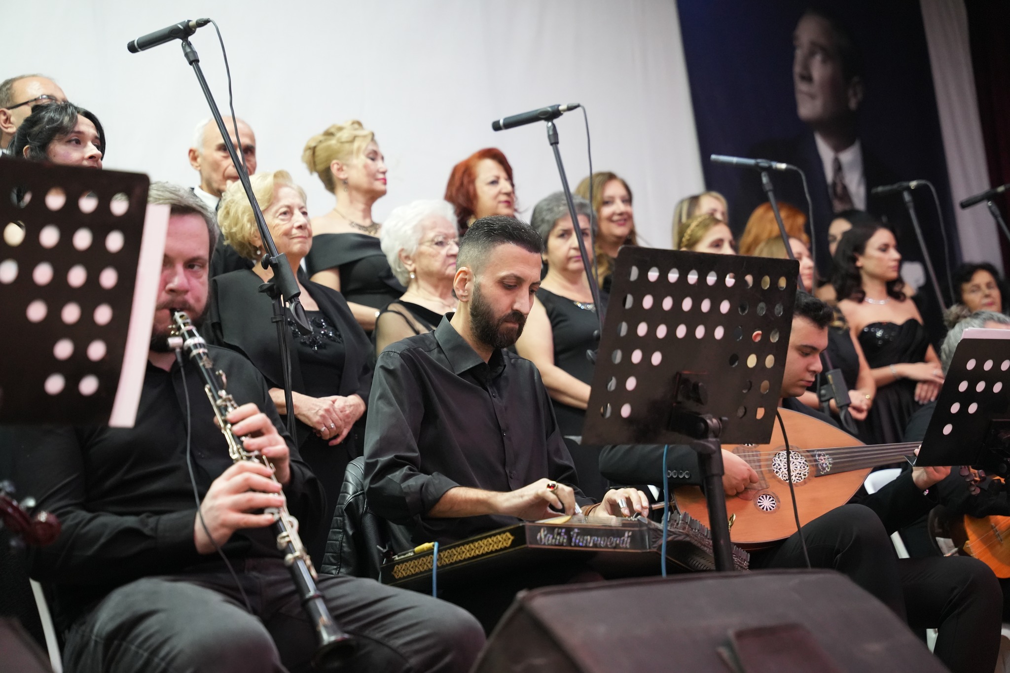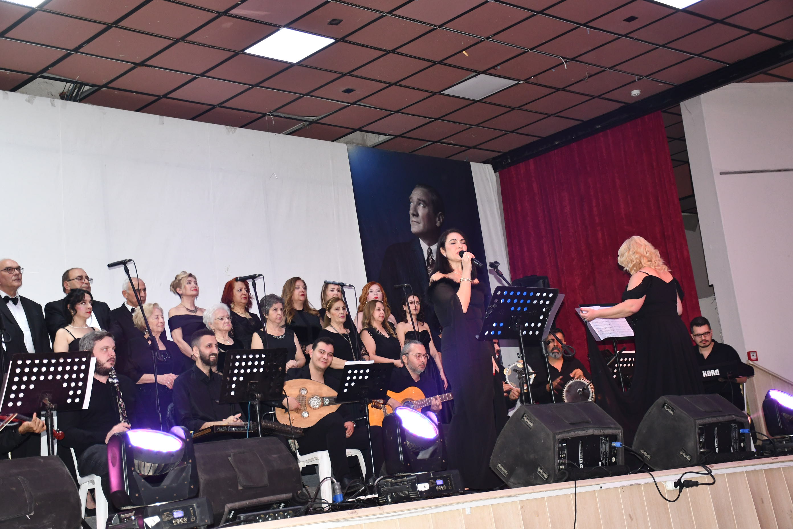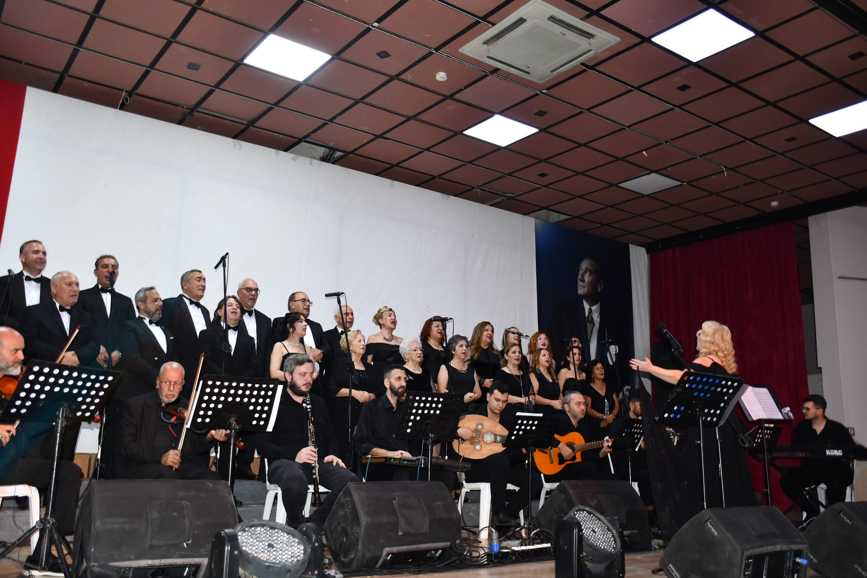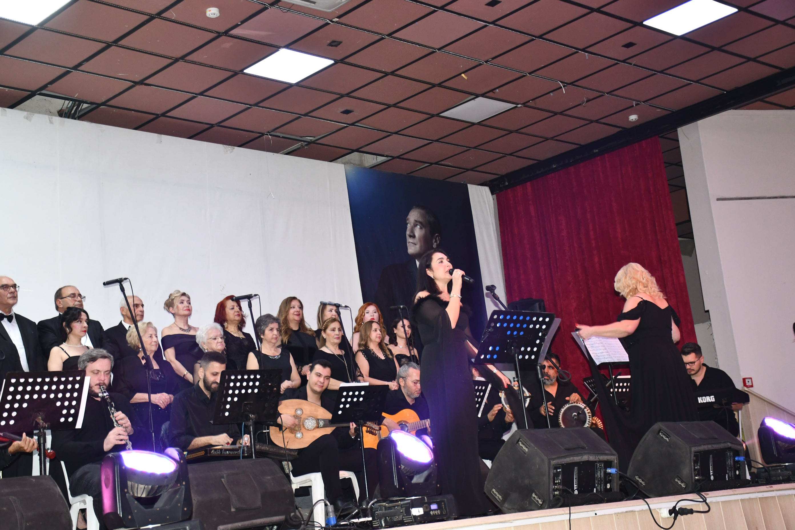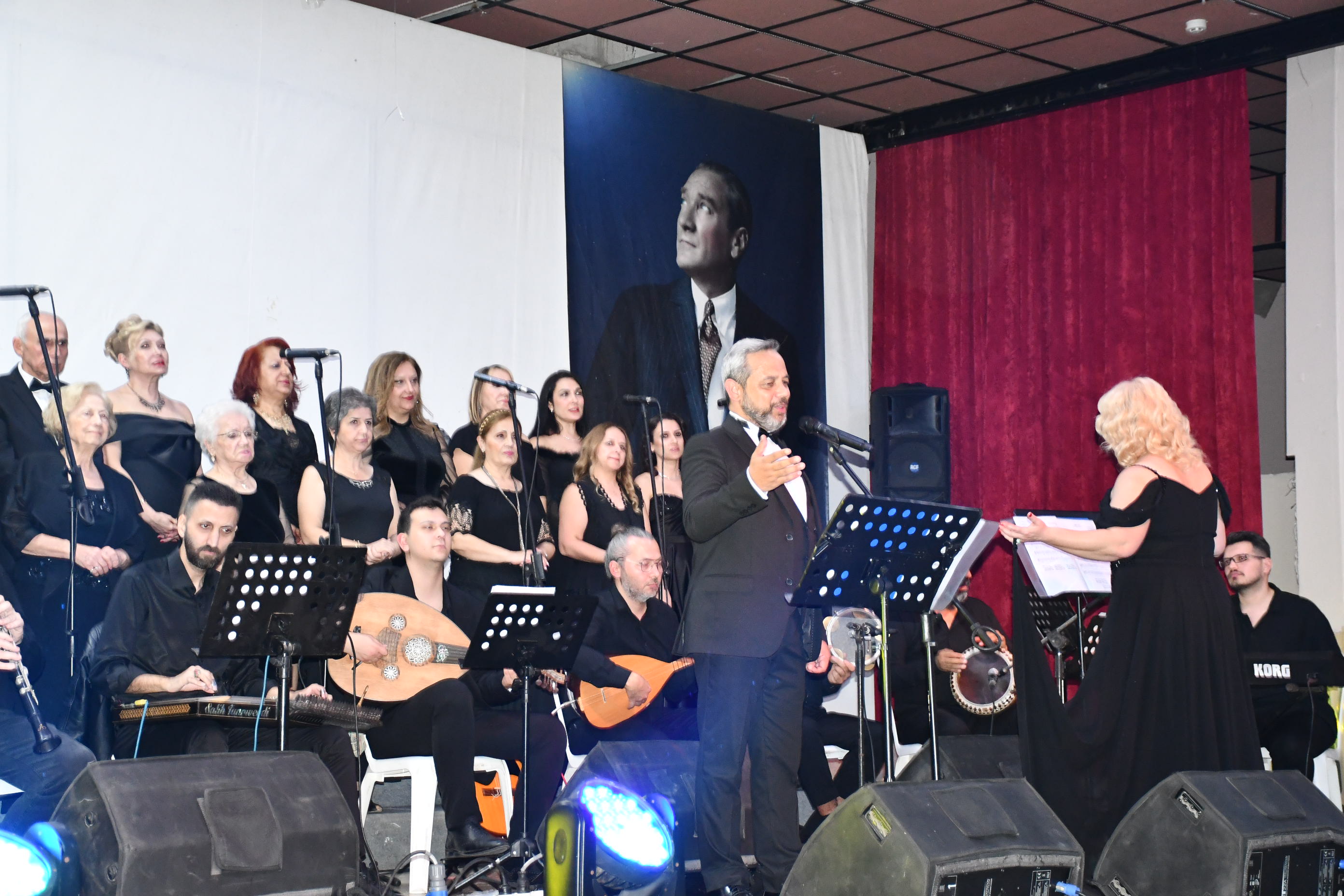 Koro, “Fikrimin İnce Gülü”, “İzmir Marşı”, “Çalın Davulları” gibi Atatürk’ün sevdiği unutulmaz eserleri seslendirirken, dinleyiciler de zaman zaman şarkılara hep bir ağızdan eşlik etti.
