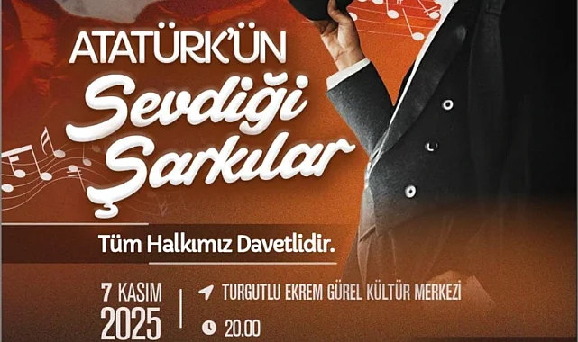 (MHA) - Turgutlu Belediyesi ve Manisa Büyükşehir Belediyesi ortaklığında düzenlenecek Türk Halk Müziği Korosu konseri, "Atatürk'ün Sevdiği Şarkılar" konseptiyle Turgutlulularla buluşacak. Şef Hasan Başkaya yönetiminde sahne alacak koro, Gazi Mustafa Kemal Atatürk'ün en sevdiği Türk Halk Müziği eserlerinden oluşan özel bir repertuvarı sahneye taşınacak. Türk müziğinin seçkin örneklerinin yer alacağı konser, müzikseverlere duygu dolu anlar da yaşatacak.