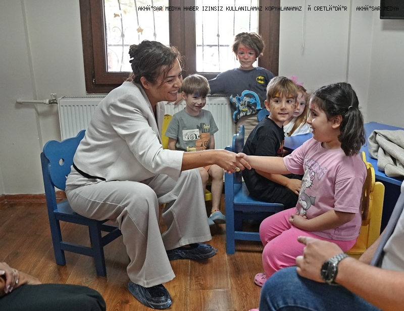 Ziyaret sırasında çocuklarla yakından ilgilenen Başkan Kayserili, onların eğitim ve oyun ortamlarını
