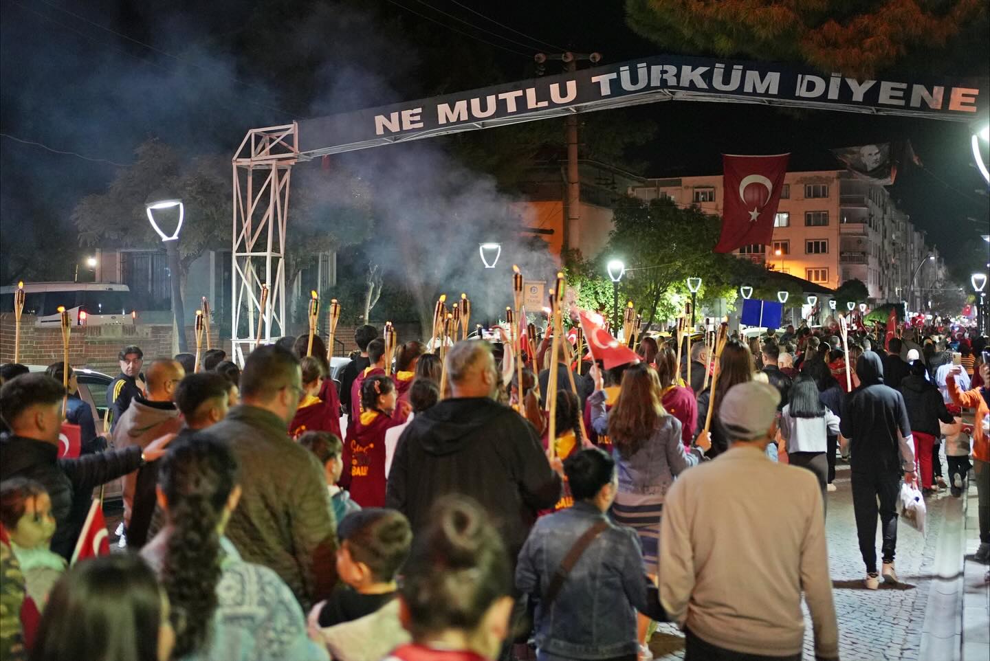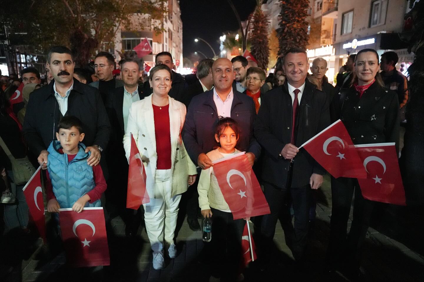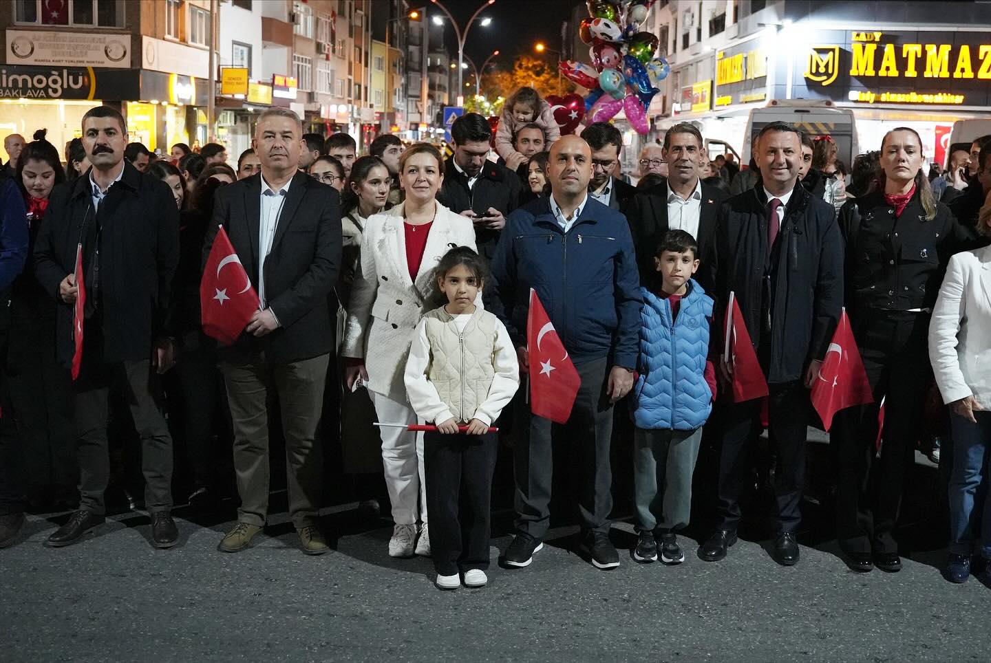 Gün boyu süren etkinliklerin ardından düzenlenen fener alayı, binlerce vatandaşın katılımıyla adeta görsel bir şölene dönüştü. Kentin dört bir yanını kırmızı beyaza boyayan kortejde, marşlar söylendi, meşaleler yakıldı, Cumhuriyet’in kazanımları hep birlikte anıldı.