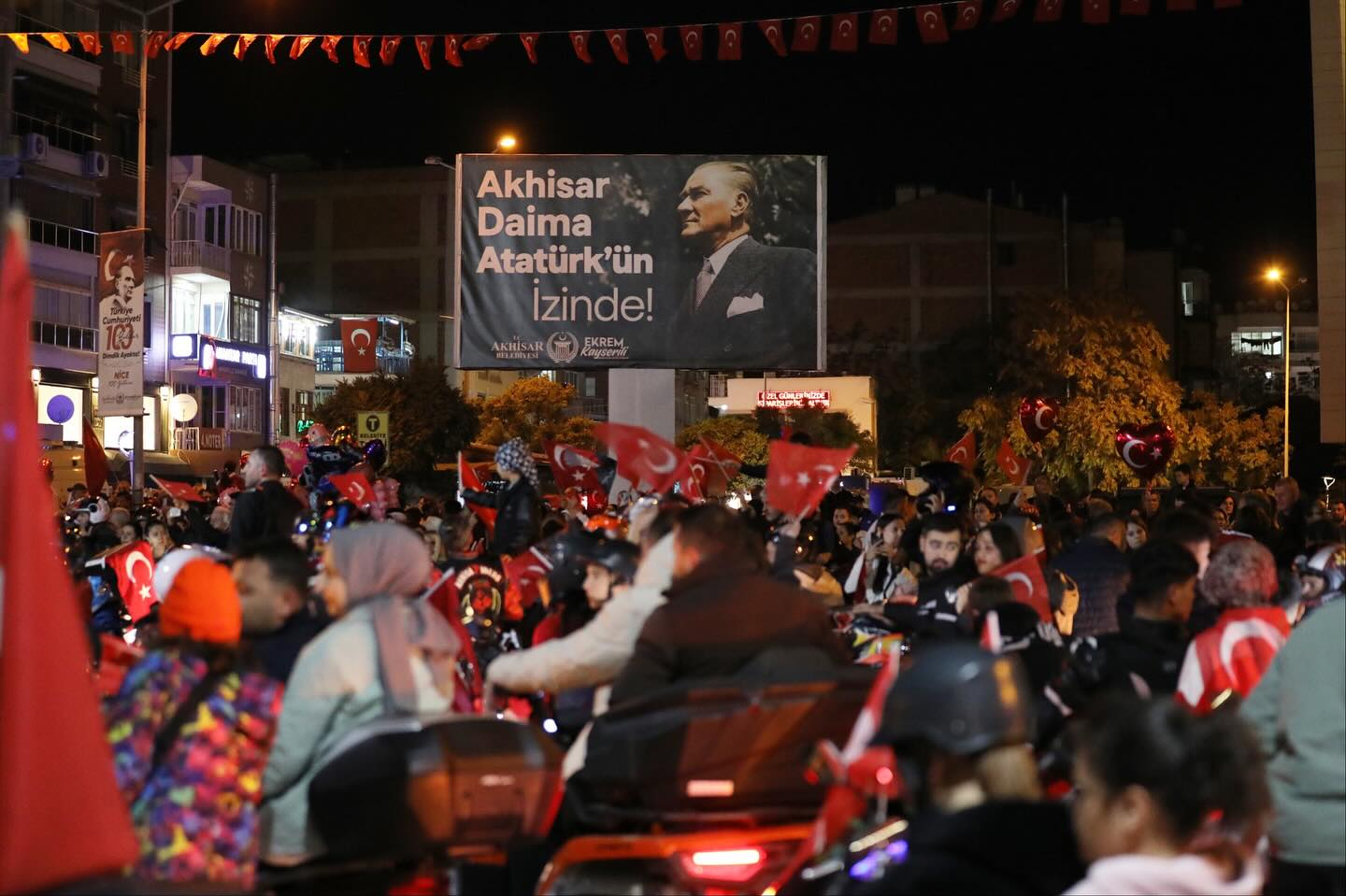 29 Ekim Cumhuriyet Bayramı’nın 102. yılı, Akhisar'da büyük bir coşku ve gururla kutlandı. İlçe Protokolü ve Öğrenciler Ellerinde Türk bayraklarıyla meydanları dolduran vatandaşlar, 7’den 70’e Cumhuriyet sevdasıyla bir araya geldi.