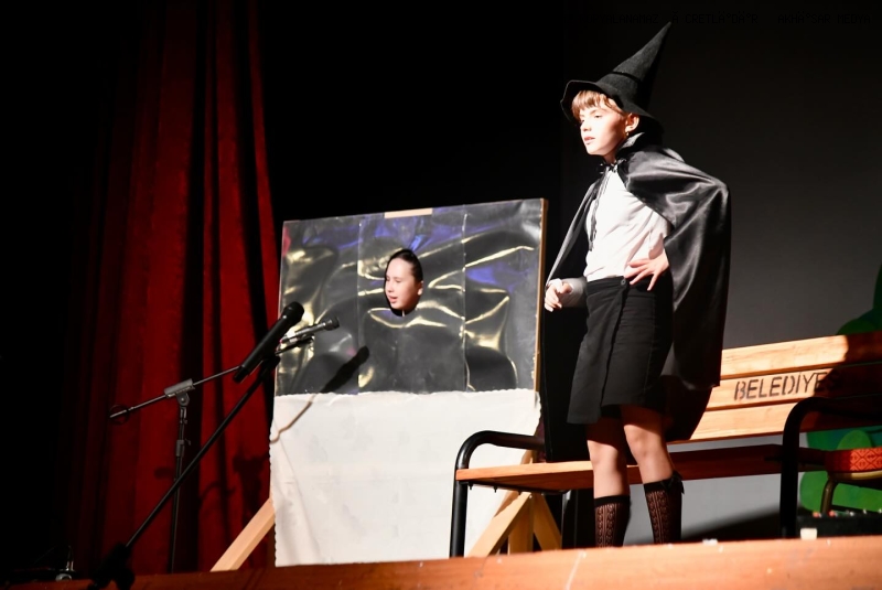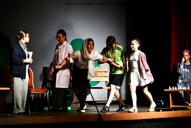 Akhisar Belediyesi Park İçi Sinema Salonu, akşam renkli ve kahkahalarla dolu bir tiyatro gecesine ev sahipliği yaptı. Ortaokul Tiyatro Kulübü öğrencilerinin sahneye taşıdığı tek perdelik absürt komedi türündeki “Hayalperest Şah-Mat” adlı oyun, izleyicilerden büyük beğeni topladı.
