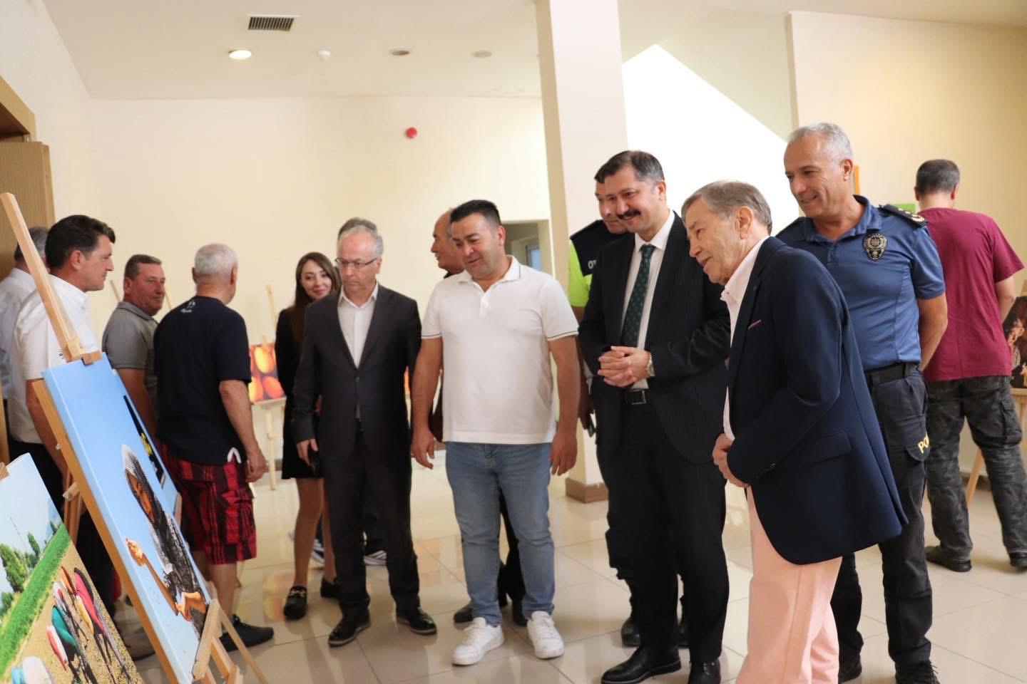 DÖNMEZ ile Kadir BOZ’a proje için destek veren DR. Ümit EVRAN birlikte kestiler. Serginin açılışında
