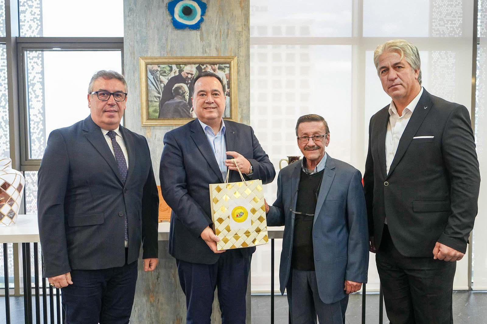 Akhisar Kahveciler Odası Başkanı Erkin Güney, Kahveciler Odası Başkan Vekili Olcay Gün ve Denetim Kurulu Başkanı Fevzi Kazımoğlu ile birlikte Manisa Büyükşehir Belediye Başkanı Besim Dutlulu’yu makamında ziyaret etti.