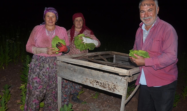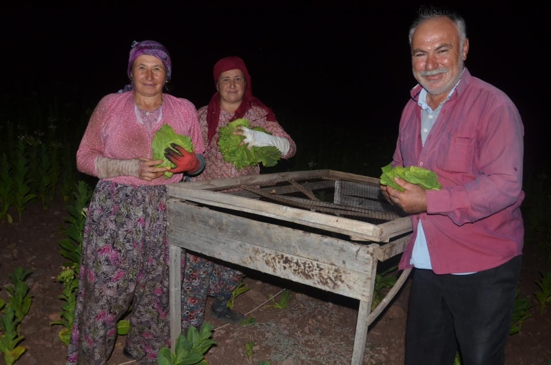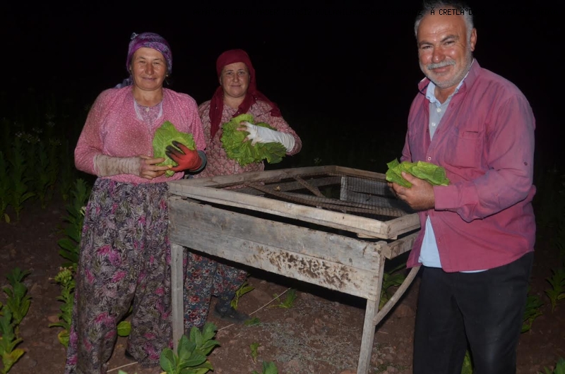 mesafedeki tütün tarlasında gece 22 00 sıralarında tütün kırarken ziyaret ettik. eşref cengiz ile tütün