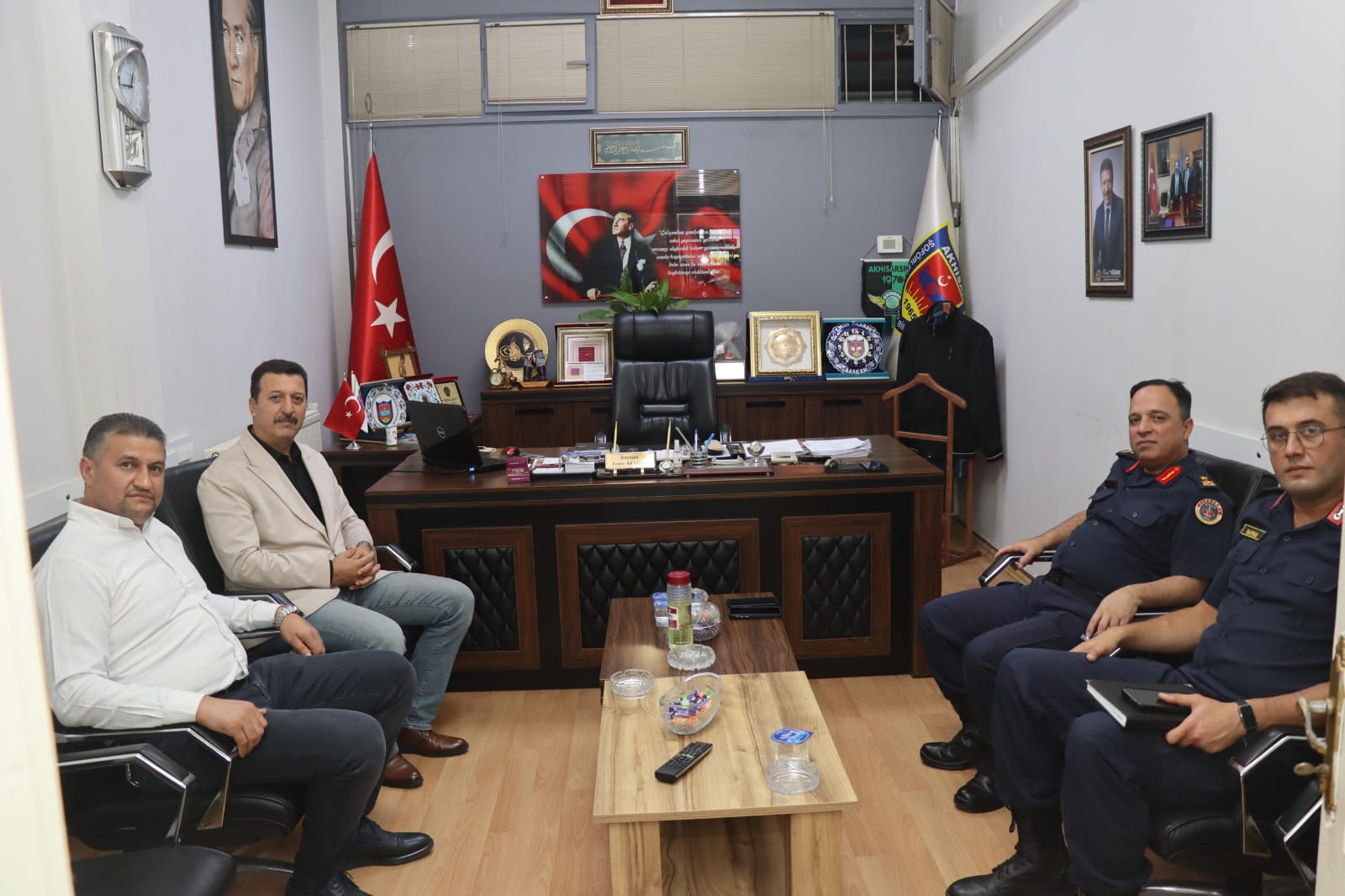 Manisa İl Jandarma Komutanı Tuğgeneral Sayın İlhan ŞEN, Akhisar’da Şoförler ve Otomobilciler Odası Başkanı Emin Akarsu’yu ziyaret etti. Gerçekleştirilen ziyarette, korsan taşımacılıkla mücadele konusunda iş birliği yapılacağı vurgulandı. İl Jandarma Komutanı ŞEN, yolcu ve sürücü güvenliği için denetimlerin artırılacağını ifade ederken, Başkan Akarsu da esnafın haklarını korumak ve korsan taşımacılığın önüne geçmek adına her türlü desteği vereceklerini belirtti.