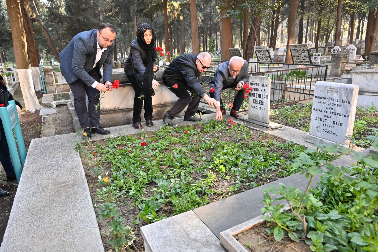 Kurtuluş Savaşı’nın Manisa’daki öncü isimlerinden biri olan Müftü Alim Efendi, kabri başında gerçekleştirilen törenle anıldı. Kurtuluş Savaşı’nın mimarı Gazi Mustafa Kemal Atatürk, milli mücadele kahramanları ve Müftü Alim Efendi’ye duaların edildiği törende, merhumun kabrine karanfiller bırakıldı. Şehzadeler ilçesi Çatal mezarlığındaki programa Mezarlıklar Dairesi Başkanı Yaşar Selcan, İl Müftü Yardımcısı Mehmet Nurlu, Alim Efendi’nin torunu Sevin Aksüyek’in oğlu Arif Aksüyek ve eşi Nuray Aksüyek ve vatandaşlar katıldı.
