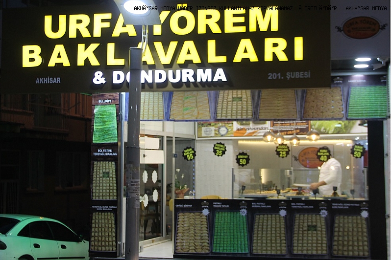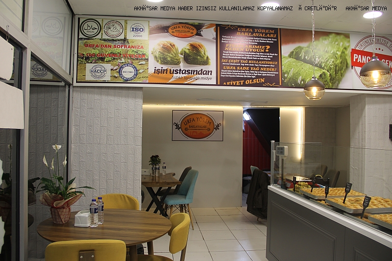 Akhisar Ragıpbey Mahallesi 15 sokak Belediye yolu üzeri hizmete girdi.Halime Özkan sahipliğini yaptığı iş yerinde Bol Fıstıklı Baklava, Cevizli Şöbiyet, Soğuk Baklava, Cevizli Baklava, Kuru Baklava, Saray Sarma vs. Nefis lezzetiyle Akhisarlıların Hizmetine girdi.Urfa Yörem Baklavaları tatlı kültürünü tanıtım amaçla çıktığımız bu yolda, taptaze fıstıklar ve cevizlerle kaliteden ödün vermeden uygun baklava üretimi yapmaya başladı. Profesyonel usta ekip birlikteliğiyle onlarca çeşit ve kalitesiyle nezih bir ortamda maharetli ellerin hazırlayıp sunduğu, kaliteli ve doğal hammadde ile hijyenik koşullarda üretilmektedir.